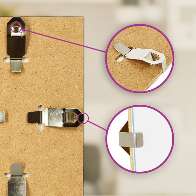 Klipy jsou silné a vyztužené, takže se neohýbají a díky nim plexisklo dokonale přilne k desce. Tím je zajištěna stabilita fotografií a plakátů v antirámu.