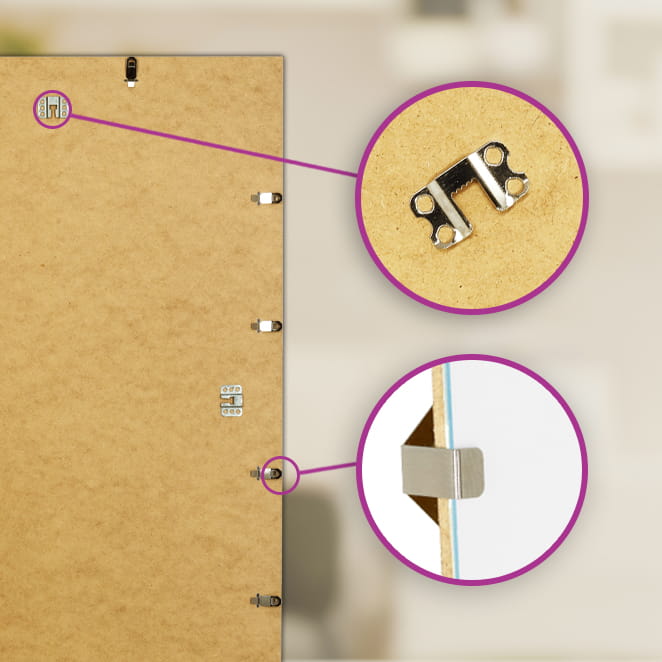 Klipy jsou silné a vyztužené, takže se neohýbají a díky nim plexisklo dokonale přilne k desce. Tím je zajištěna stabilita fotografií a plakátů v antirámu.