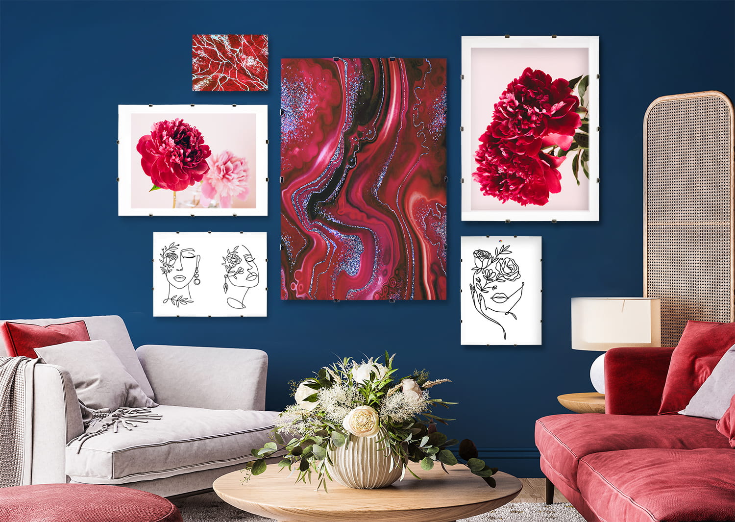 Závěsy se montují do antirámů od rozměru 30x40. Menší rozměry se montují na kovový klip. Tímto způsobem nejsou materiály příliš zatěžovány a antirámek vydrží déle. Antirámy do velikosti 30x40 lze zavěsit na klipy jak horizontálně, tak vertikálně.