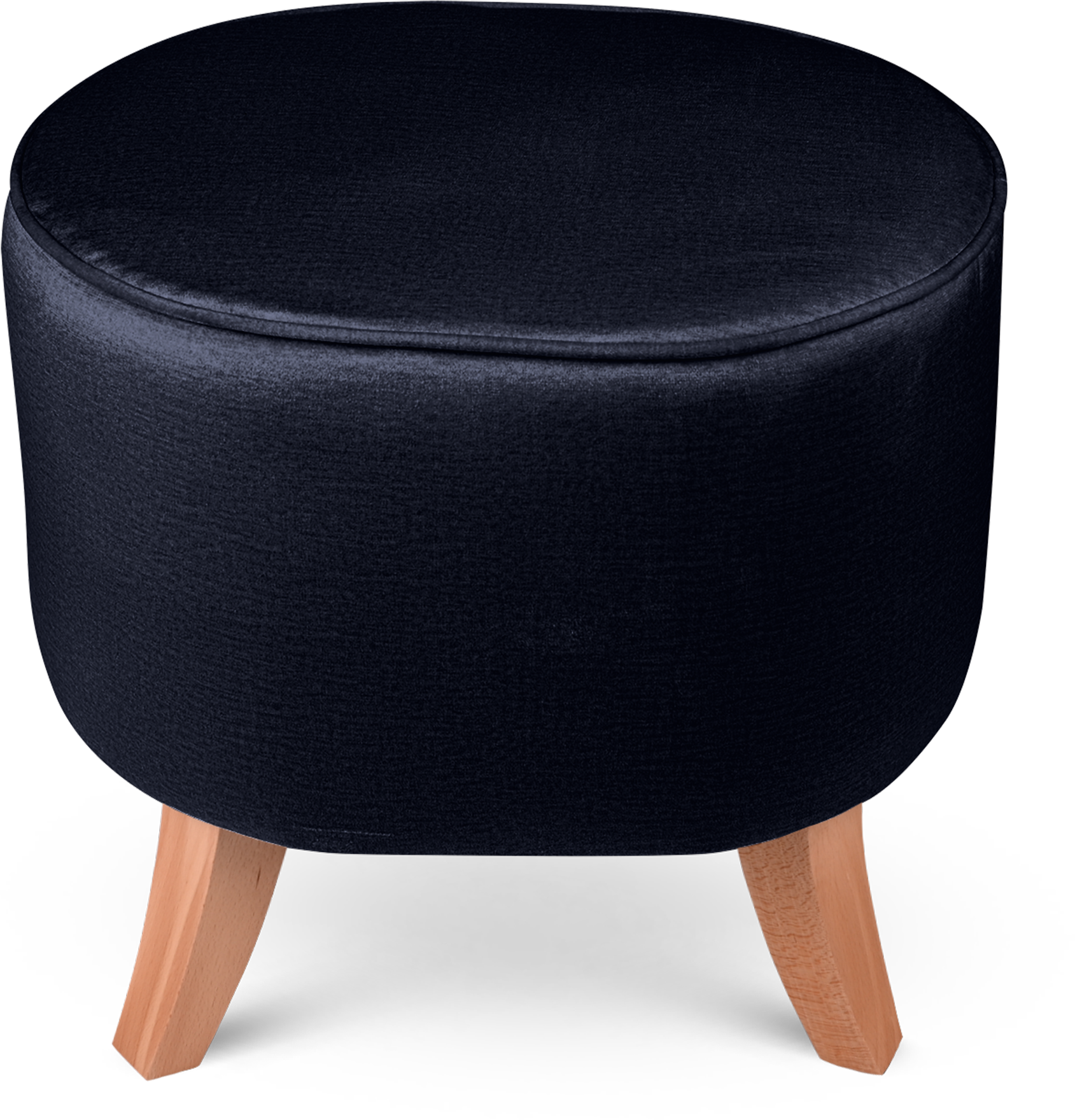Elegantní oválný velurový puf s dřevěnými nohami v tmavě modré barvě o rozměrech 42 x 52 x 45 cm
