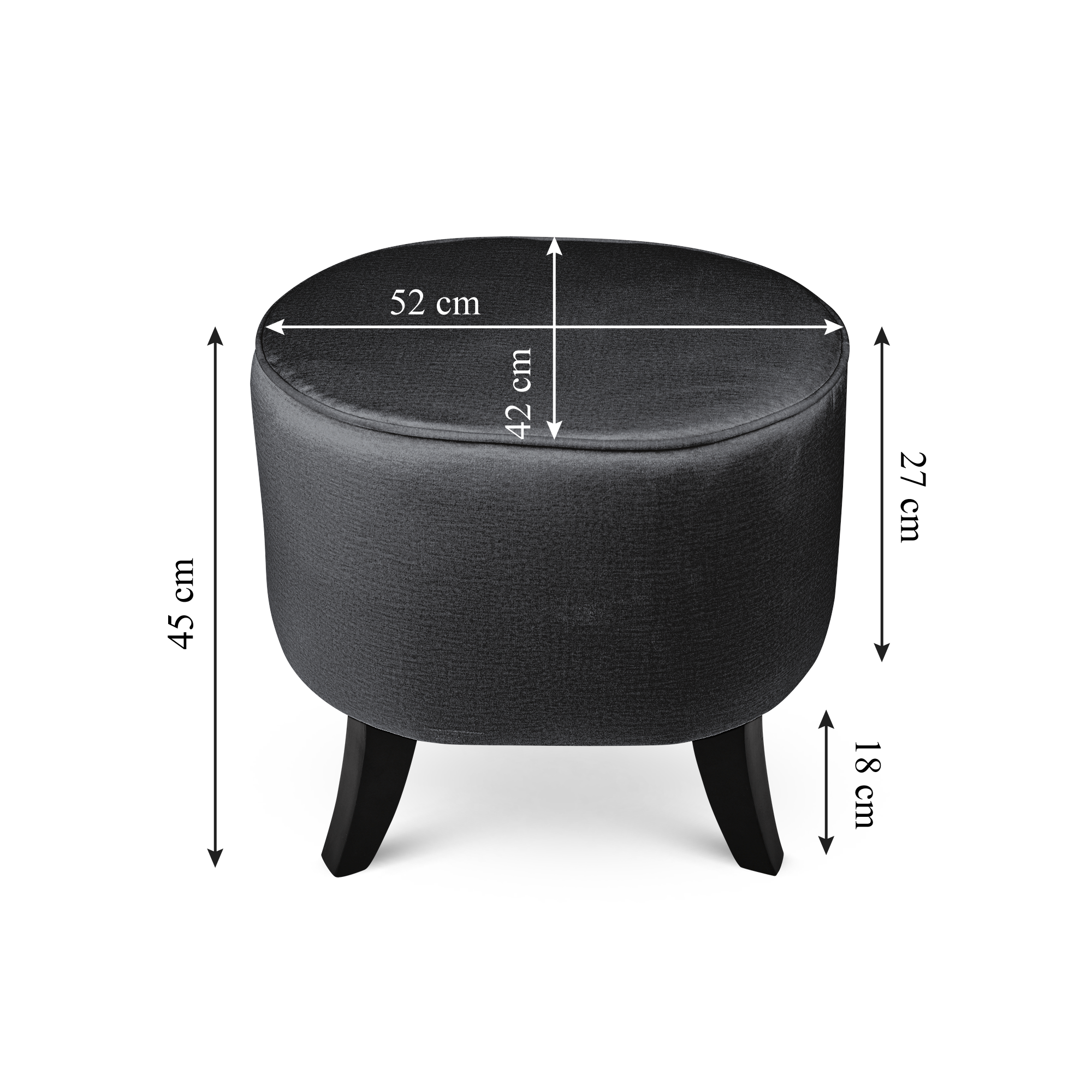 Elegantní oválný velurový puf s dřevěnými nohami v grafitové barvě o rozměrech 42 x 52 x 45 cm
