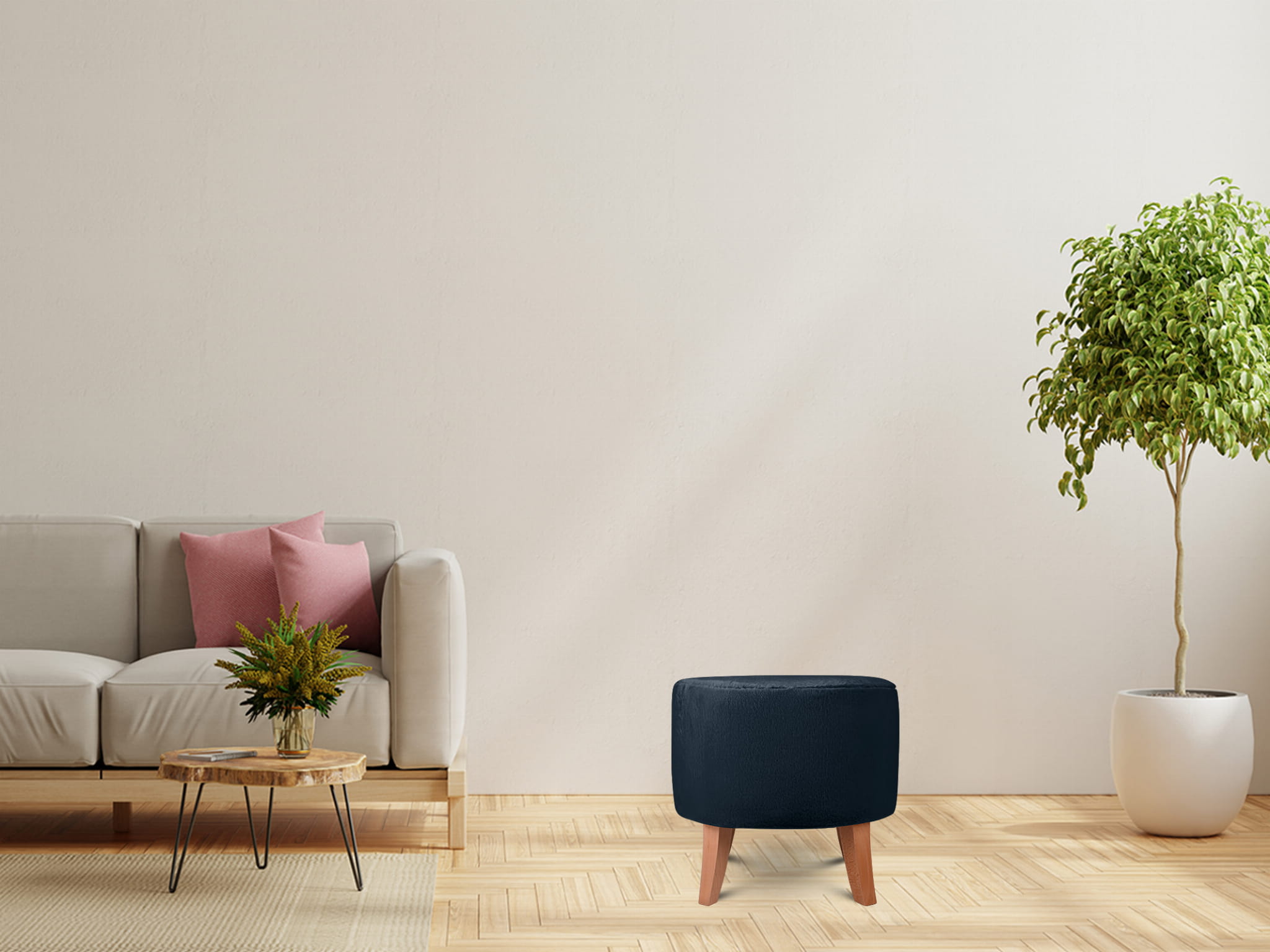 - Puf je vybaven dřevěnými nožkami v barvě přírodního dřeva.