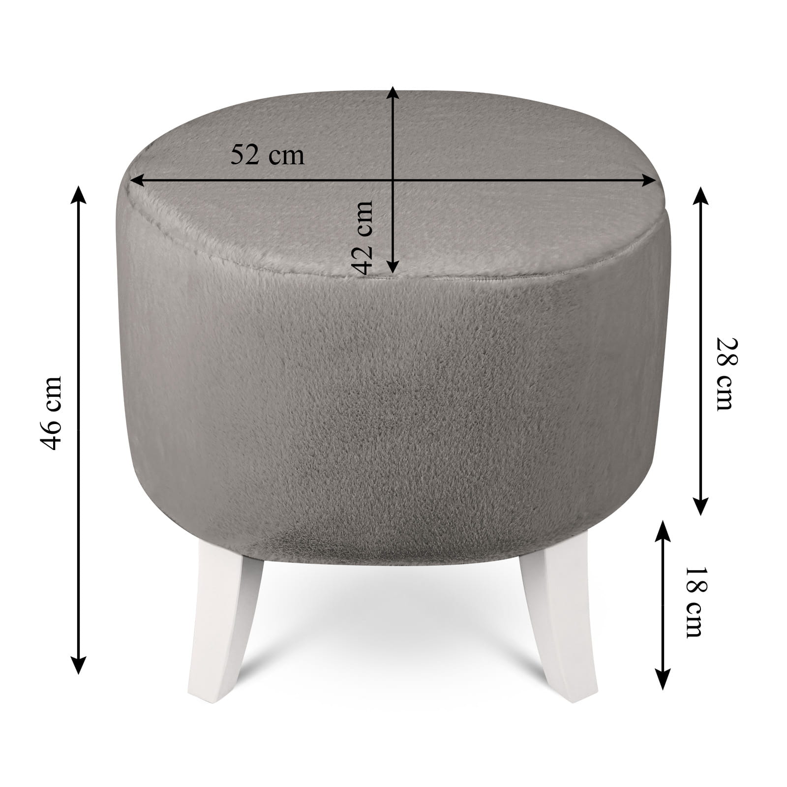 Elegantní oválný puf v imitaci kožešiny s dřevěnými nohami ve světle šedé barvě o rozměrech 52 x 42 x 45 cm.