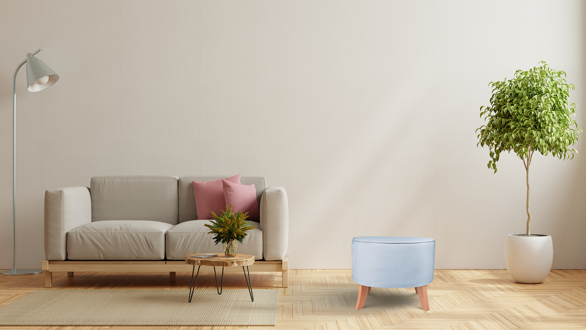 - Puf je vybaven dřevěnými nohami v barvě přírodního dřeva.