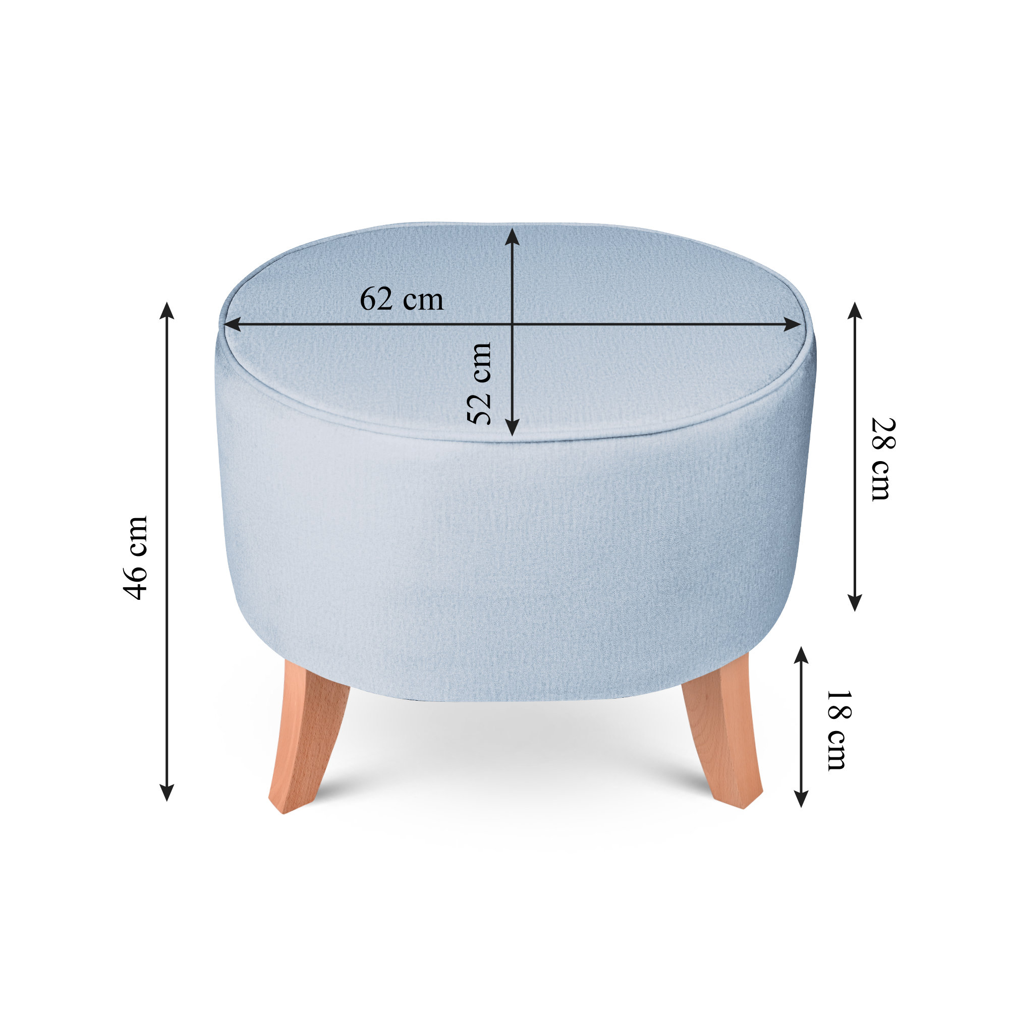 Čalouněný oválný puf 52×62×46 cm STŘEDNÍ ve světle modré barvě
