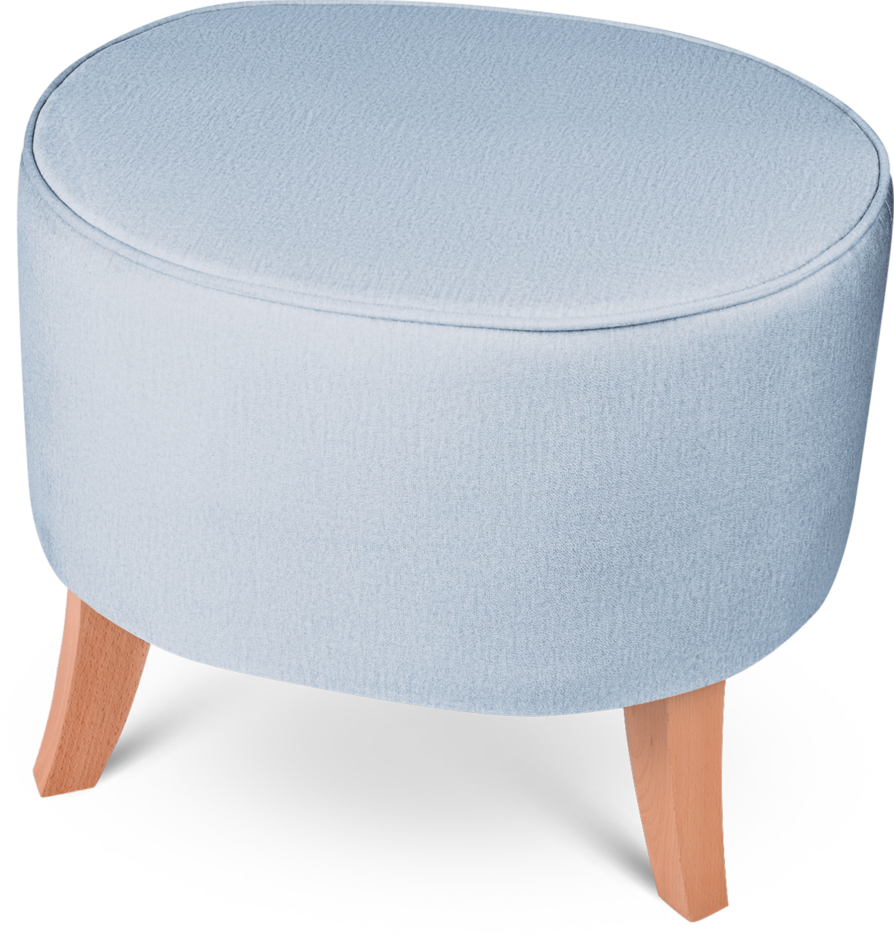 Elegantní oválný velurový puf na dřevěných nožkách ve světle modré barvě o rozměrech 62 x 52 x 45 cm