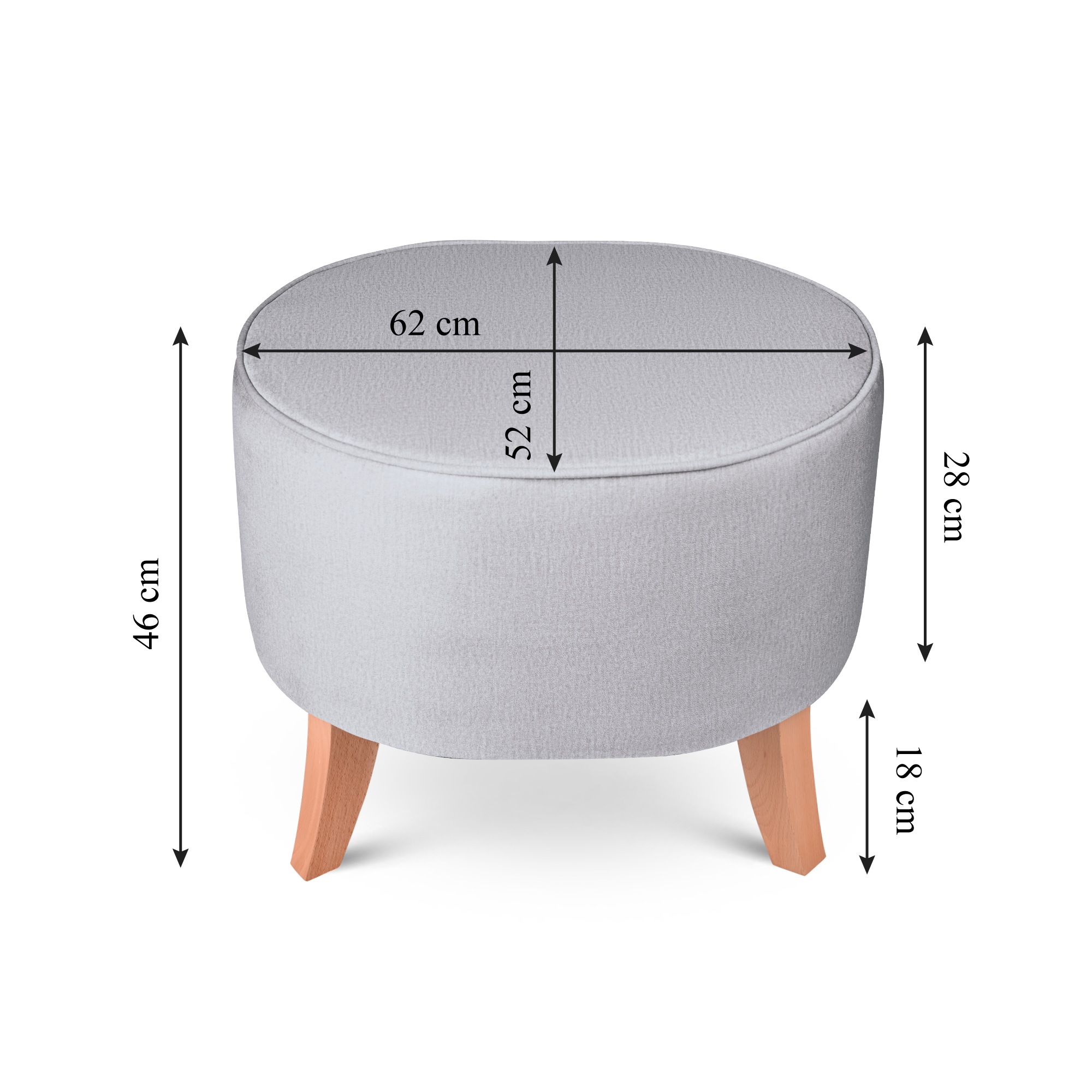 Elegantní oválný velurový puf s dřevěnými nožkami ve světle šedé barvě o rozměrech 62 x 52 x 45 cm