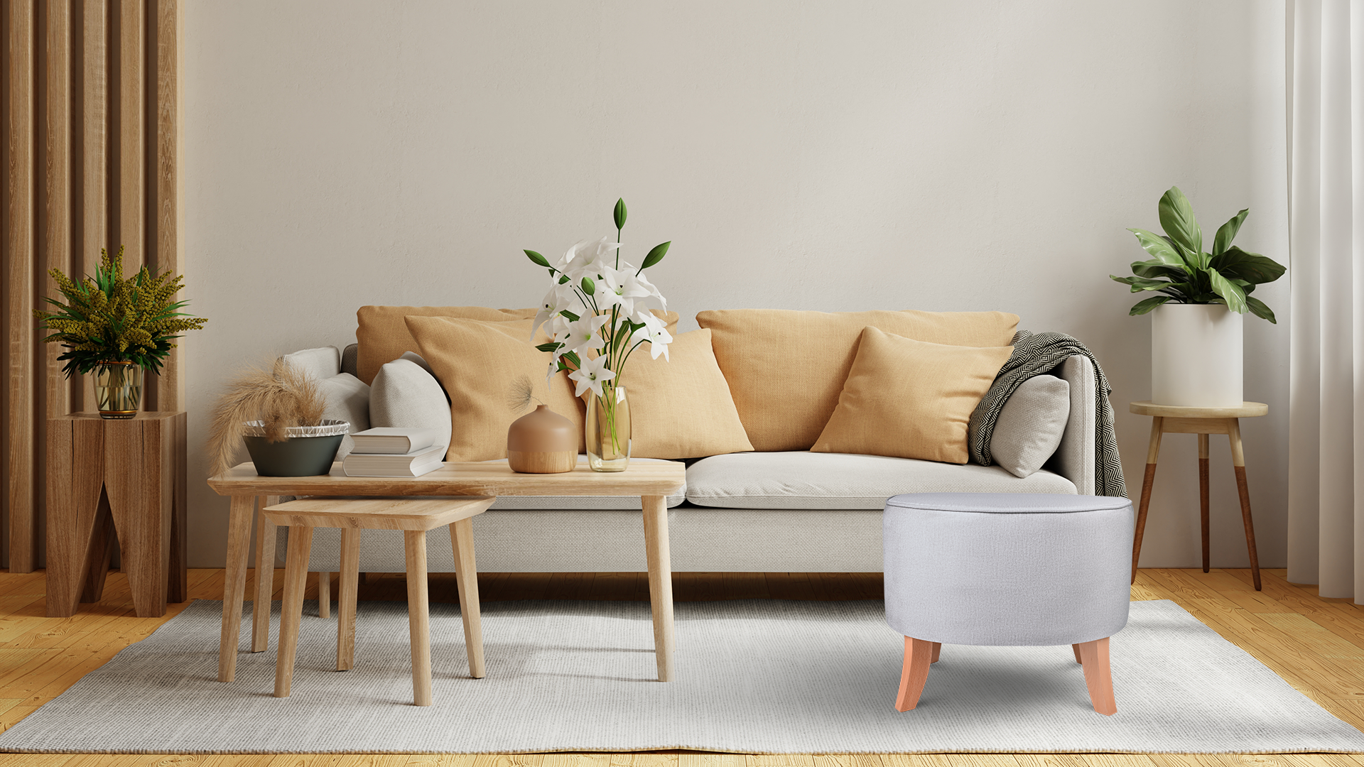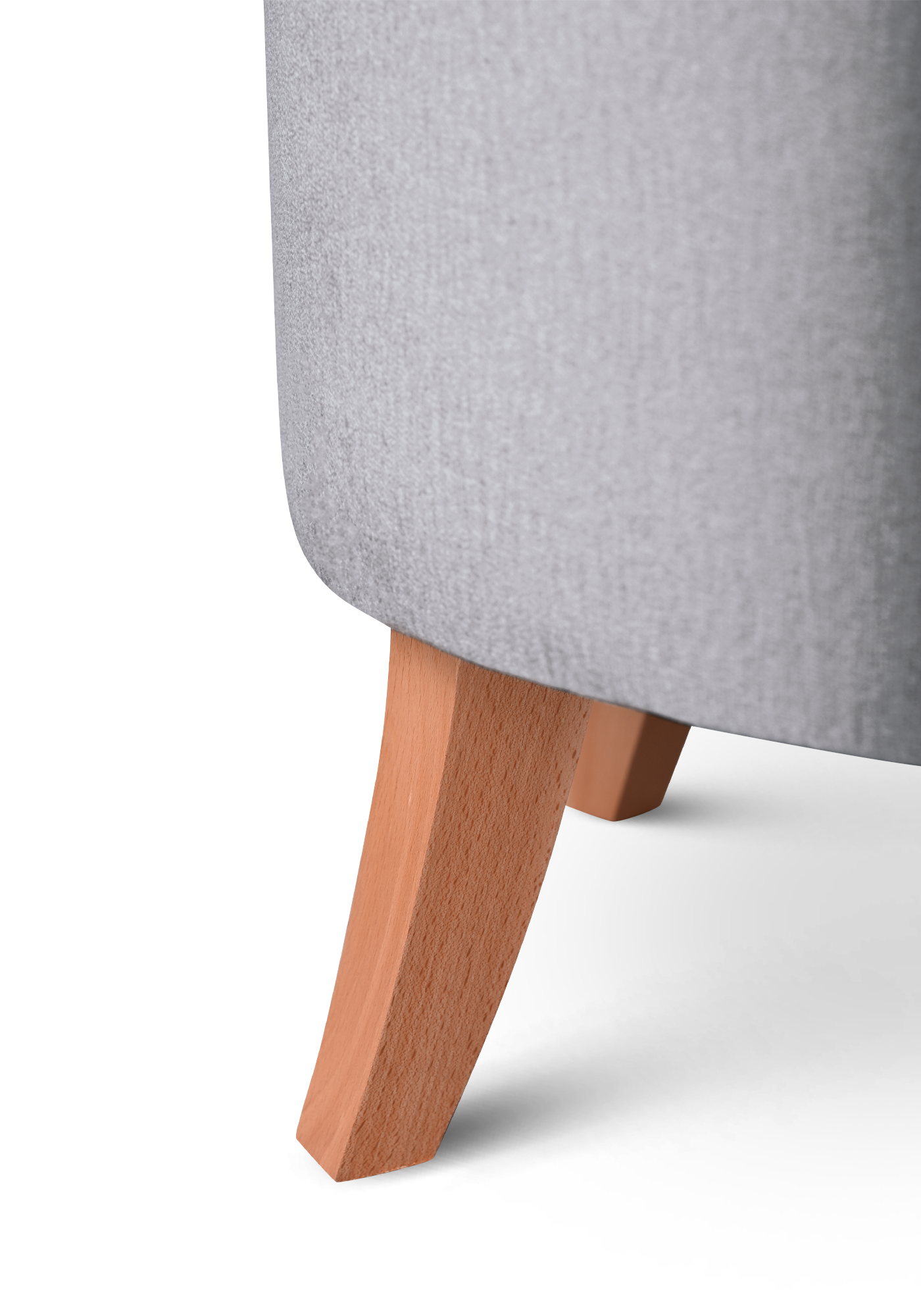 - Puf je vybaven dřevěnými nohami v barvě přírodního dřeva.