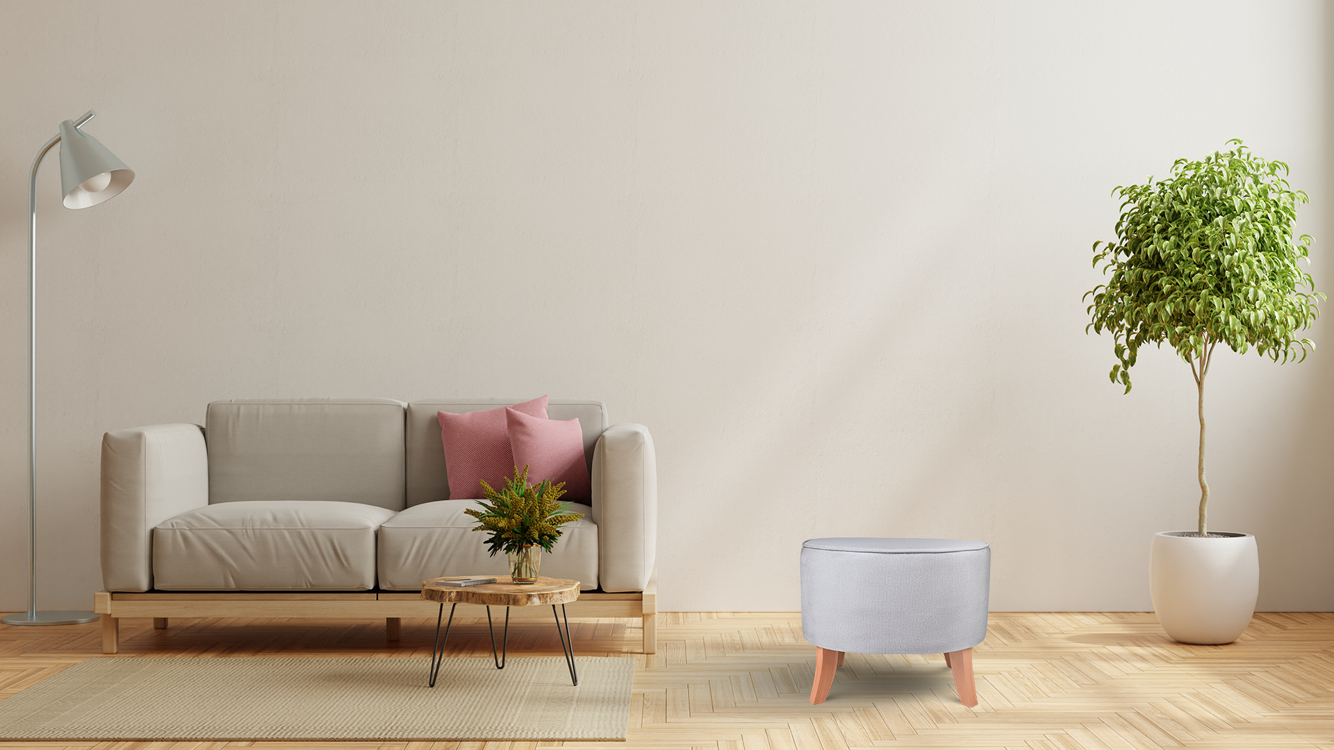 - Na puf jsme použili potahovou látku Monolith 84 ve světle šedé barvě.