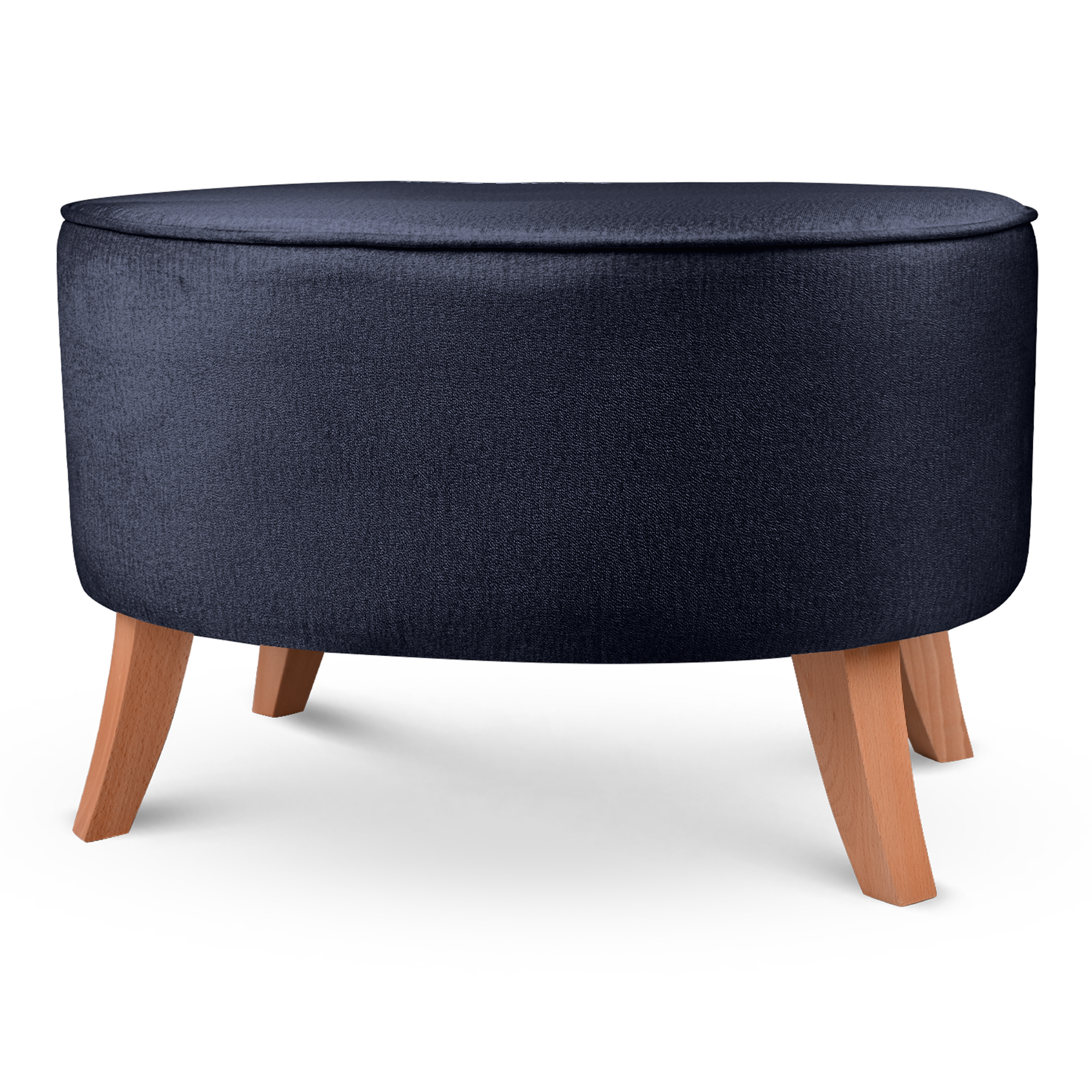 Čalouněný oválný puf 62×72×46 cm VELKÝ v tmavě modré barvě