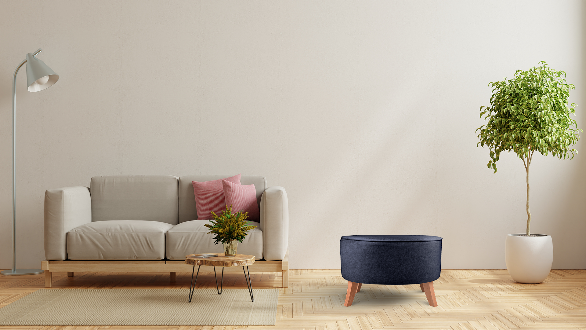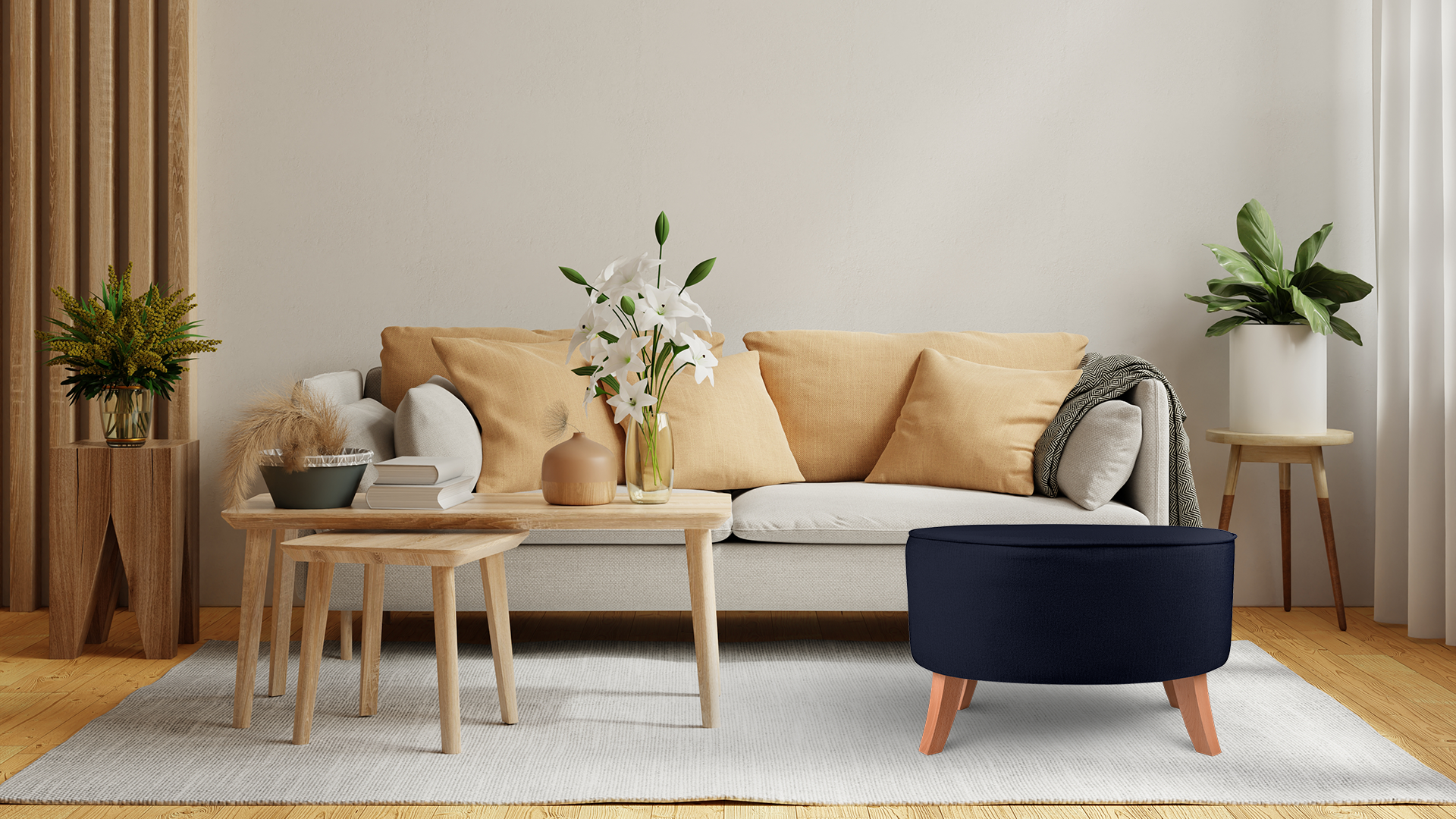 - Puf je vybaven dřevěnými barevnými nožkami.
