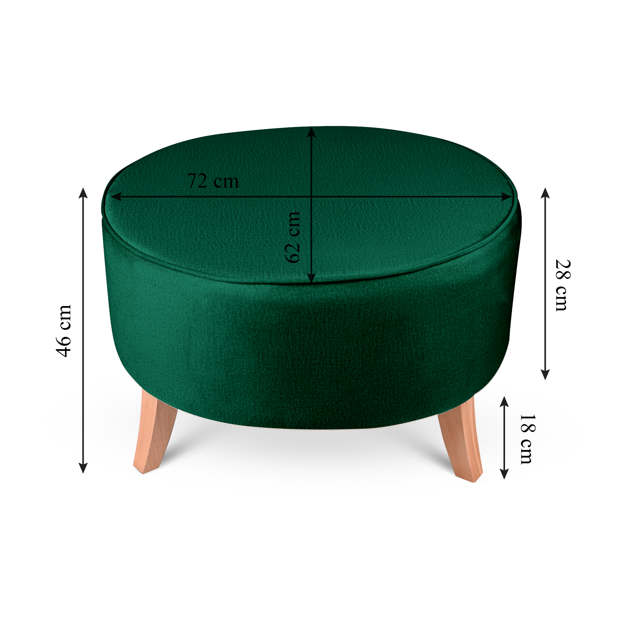 Elegantní oválný velurový puf s dřevěnými nožkami v zelené barvě o rozměrech 72 x 62 x 45 cm