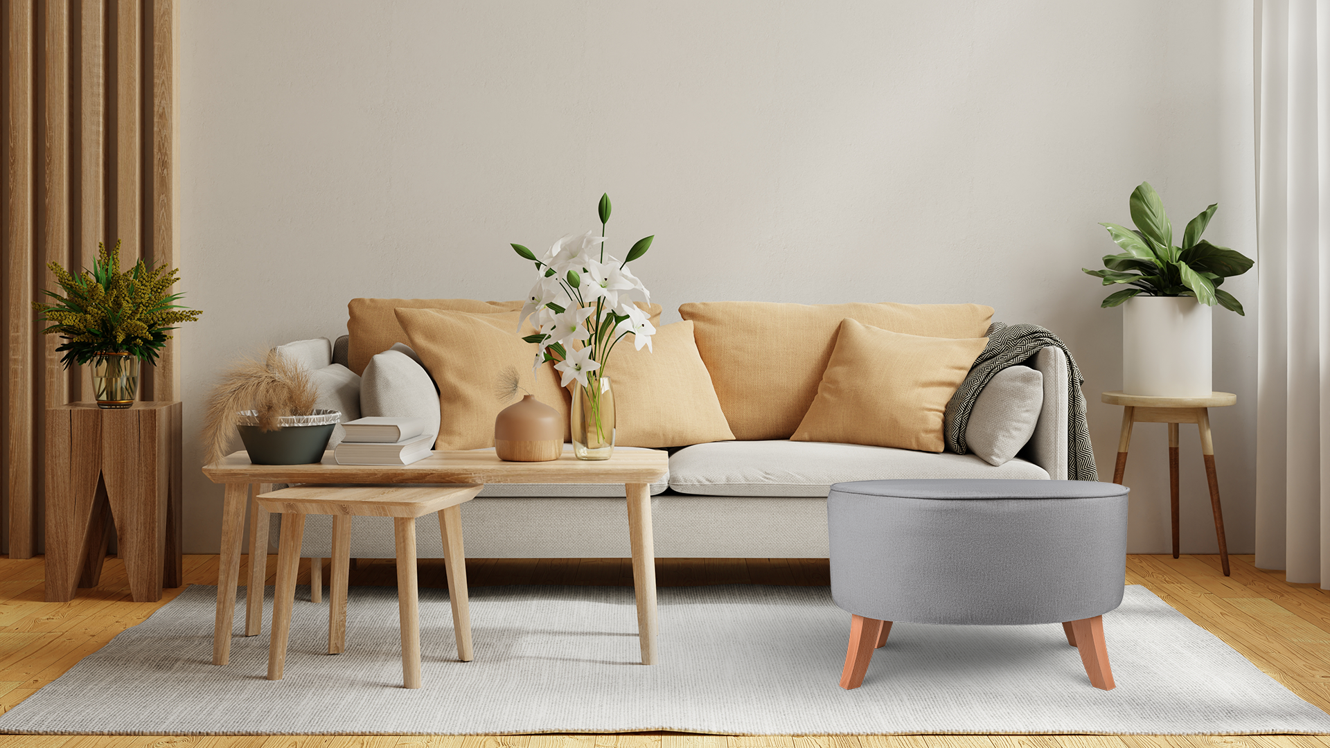- Na puf jsme použili potahovou látku Monolith 84 ve světle šedé barvě.
