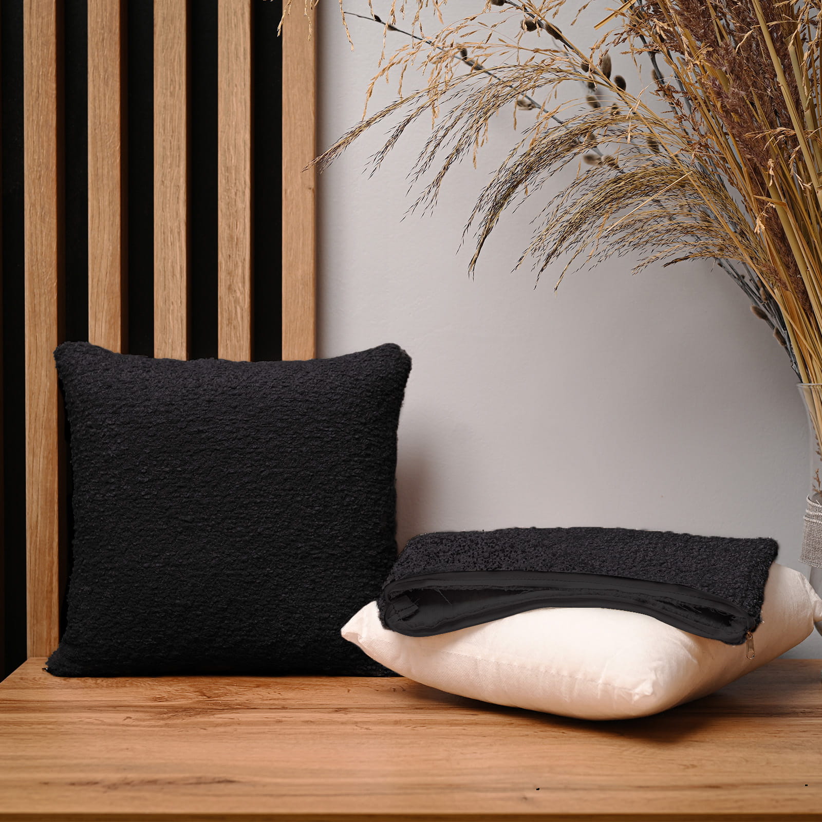 Dekorační povlak na polštář 30x30 cm v černé barvě z texturované žinylkové látky