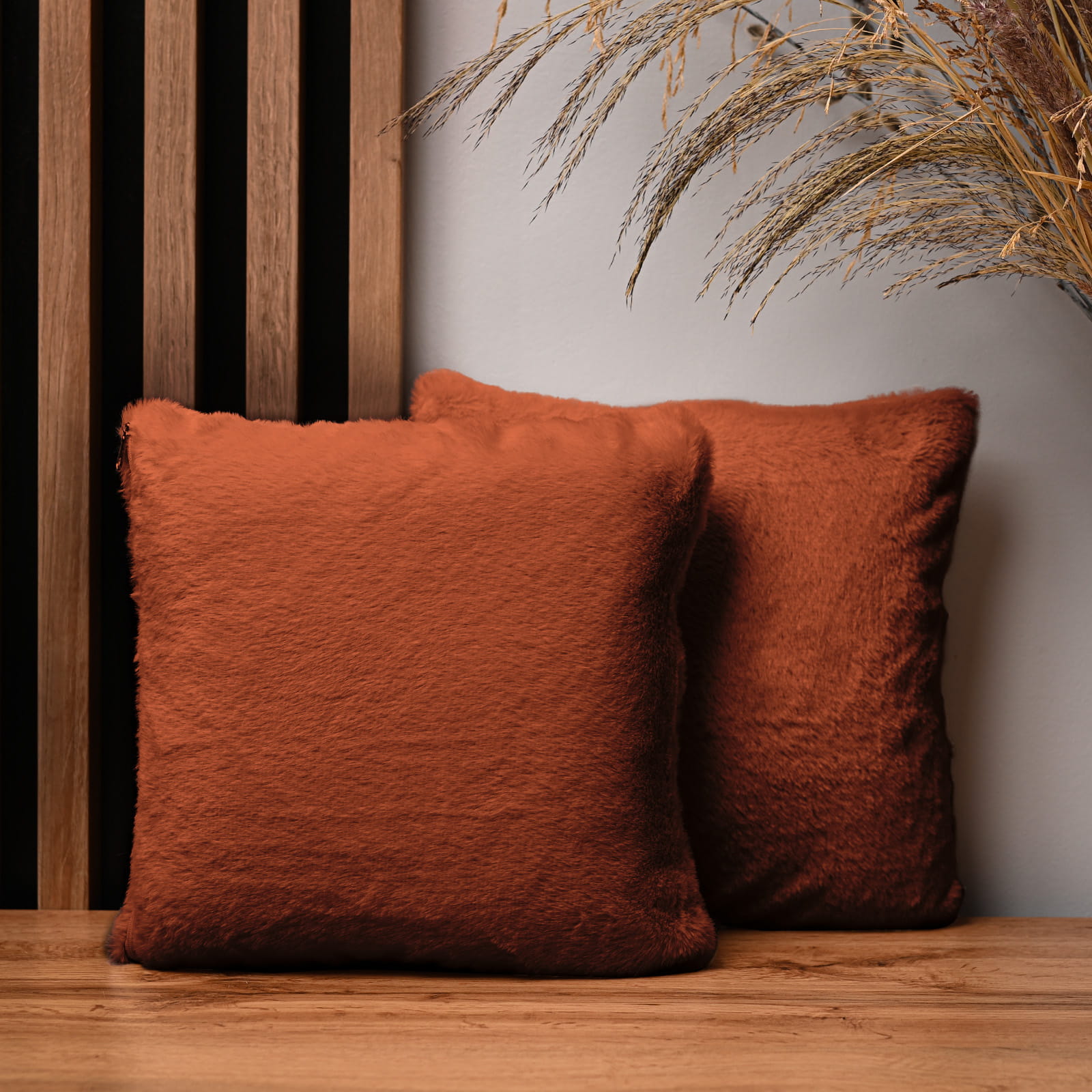 Dekorační povlak na polštář 30x30 cm v tmavě oranžové barvě s imitací kožešiny