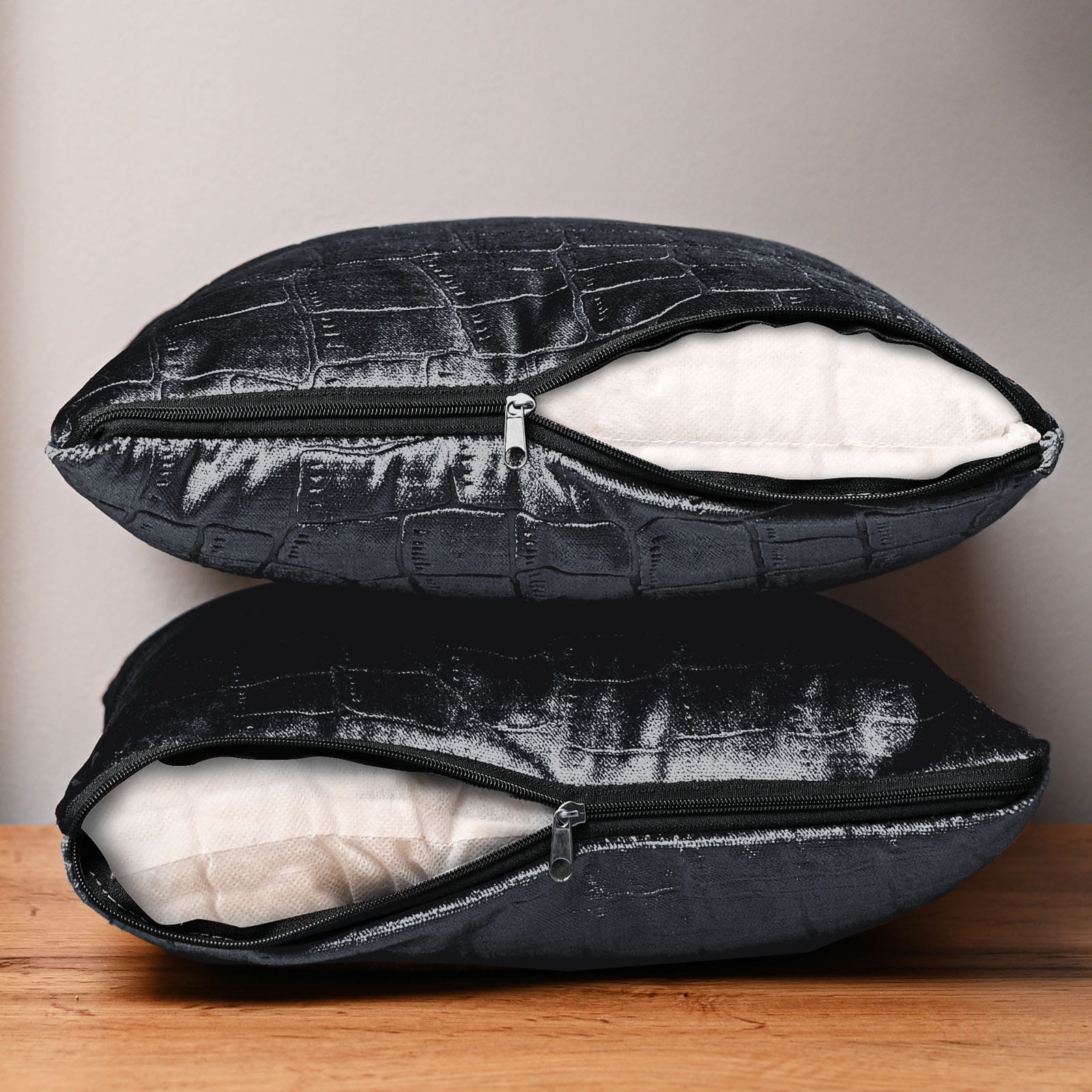 Dekorační povlak na polštář 30x30 cm z antracitové velurové tkaniny s reliéfním vzorem „krokodýlí kůže“