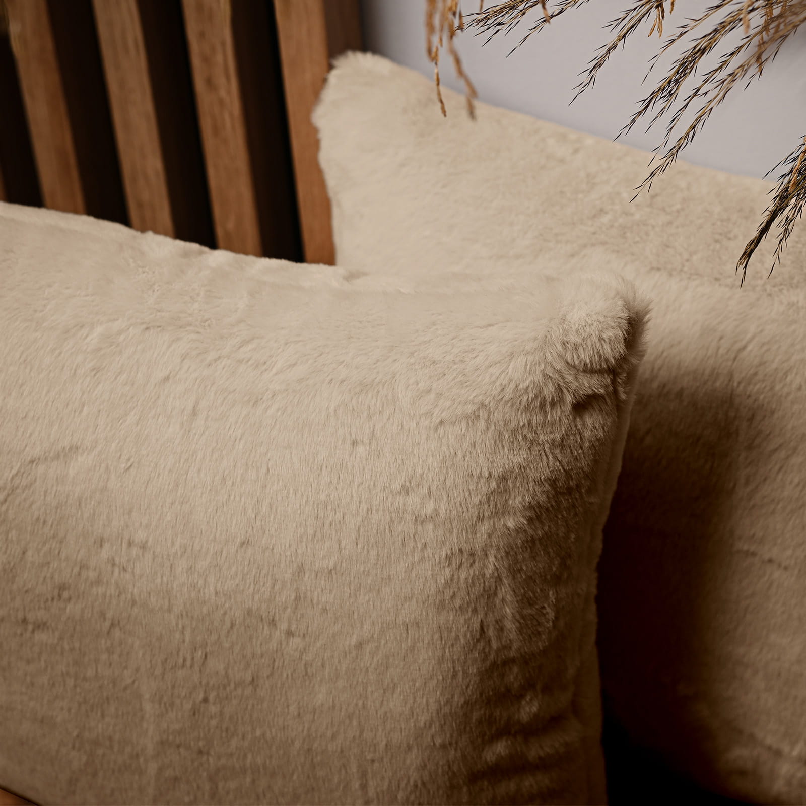 Dekorační povlak na polštář 30x30 cm z imitace kožešiny v pískové barvě