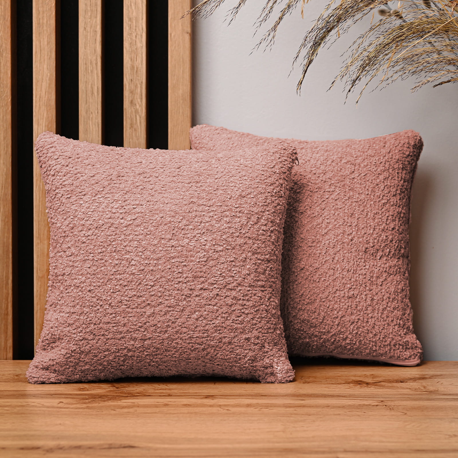 Dekorační povlak na polštář 30x30 cm z lososově zbarvené strukturované žinylkové tkaniny