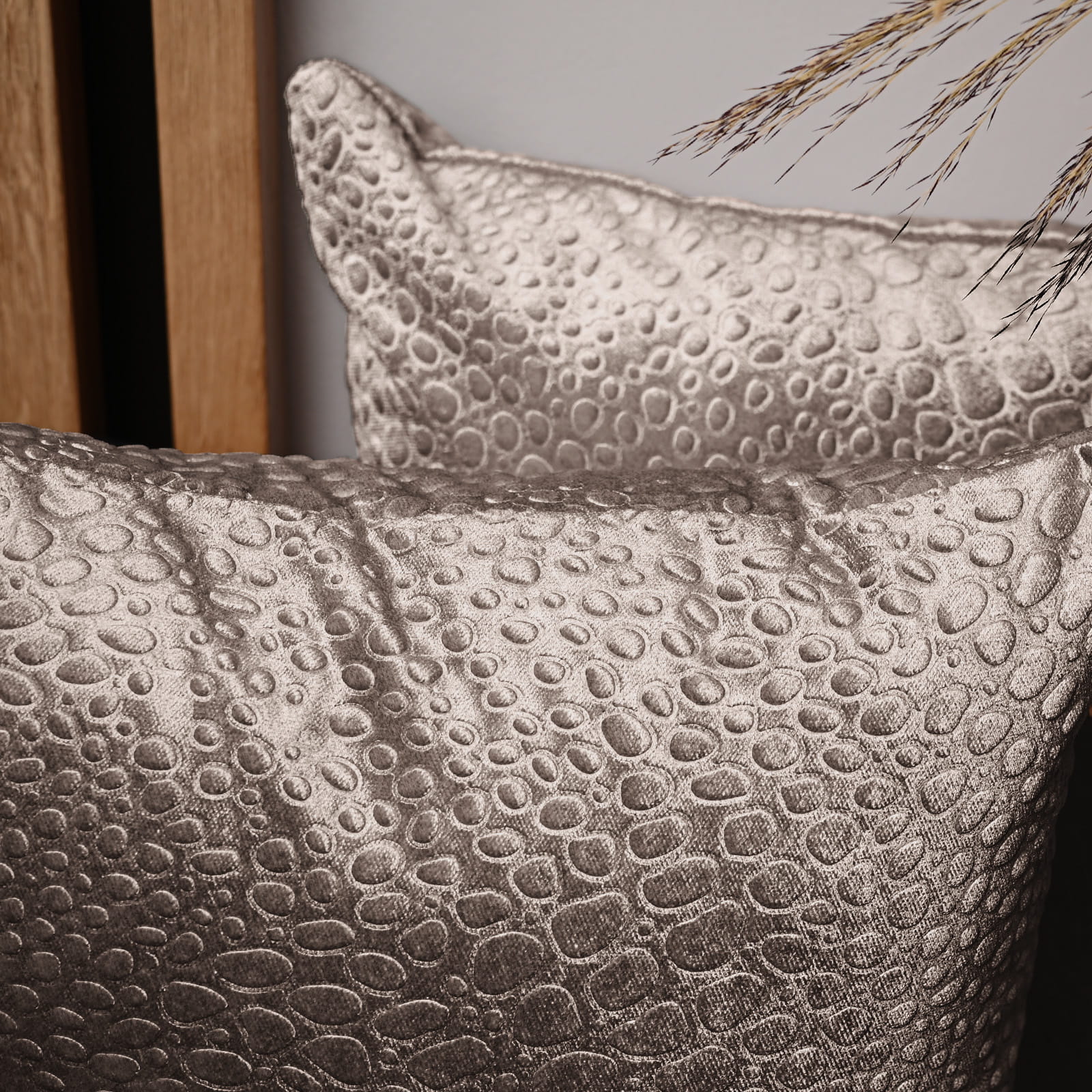 Dekorační povlak na polštář 30x30 cm z tmavě béžové velurové tkaniny s texturou „kapek“
