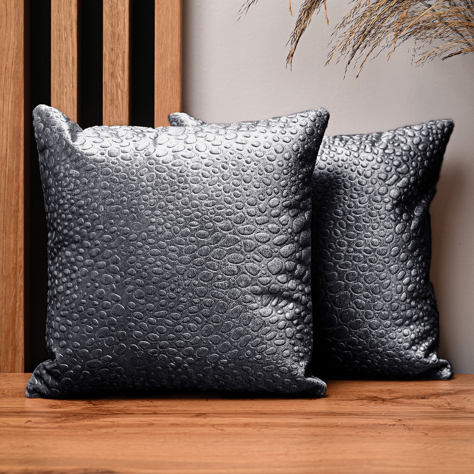 Dekorační povlak na polštář 30x30 cm z tmavě šedé velurové tkaniny s texturou „kapek“