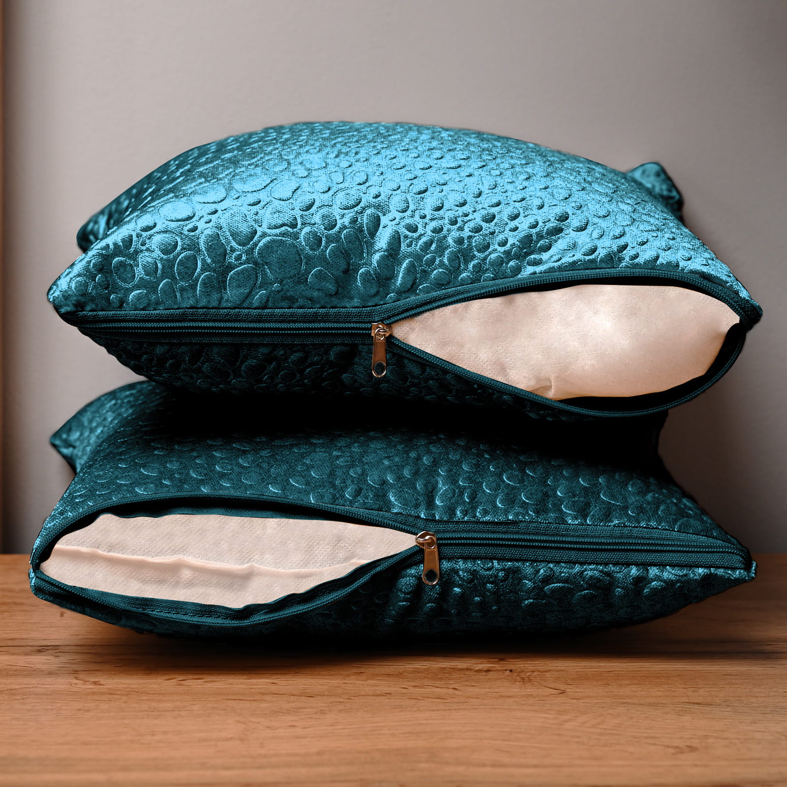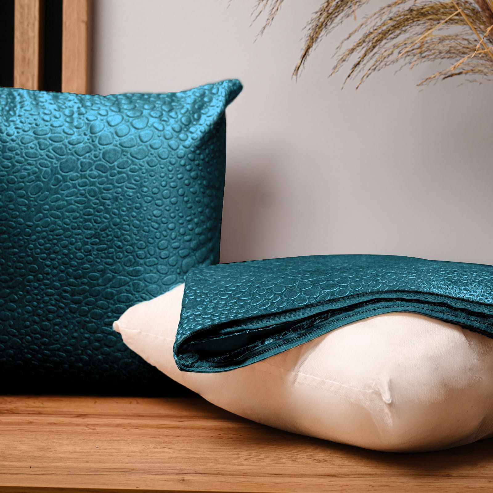 Dekorační povlak na polštář 30x30 cm z tyrkysové velurové látky s texturou „kapek“