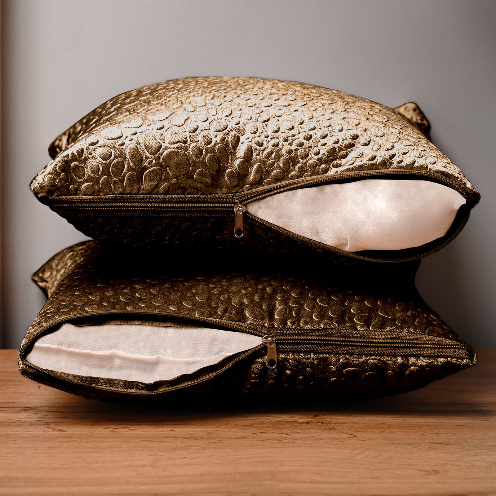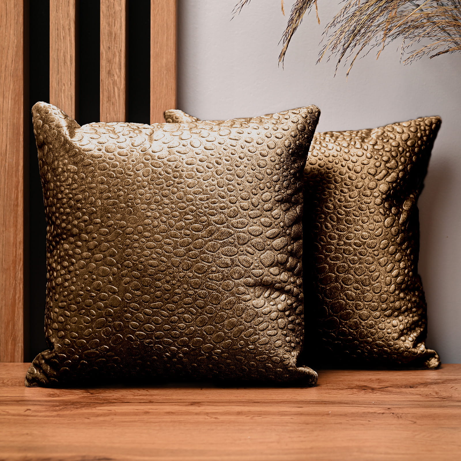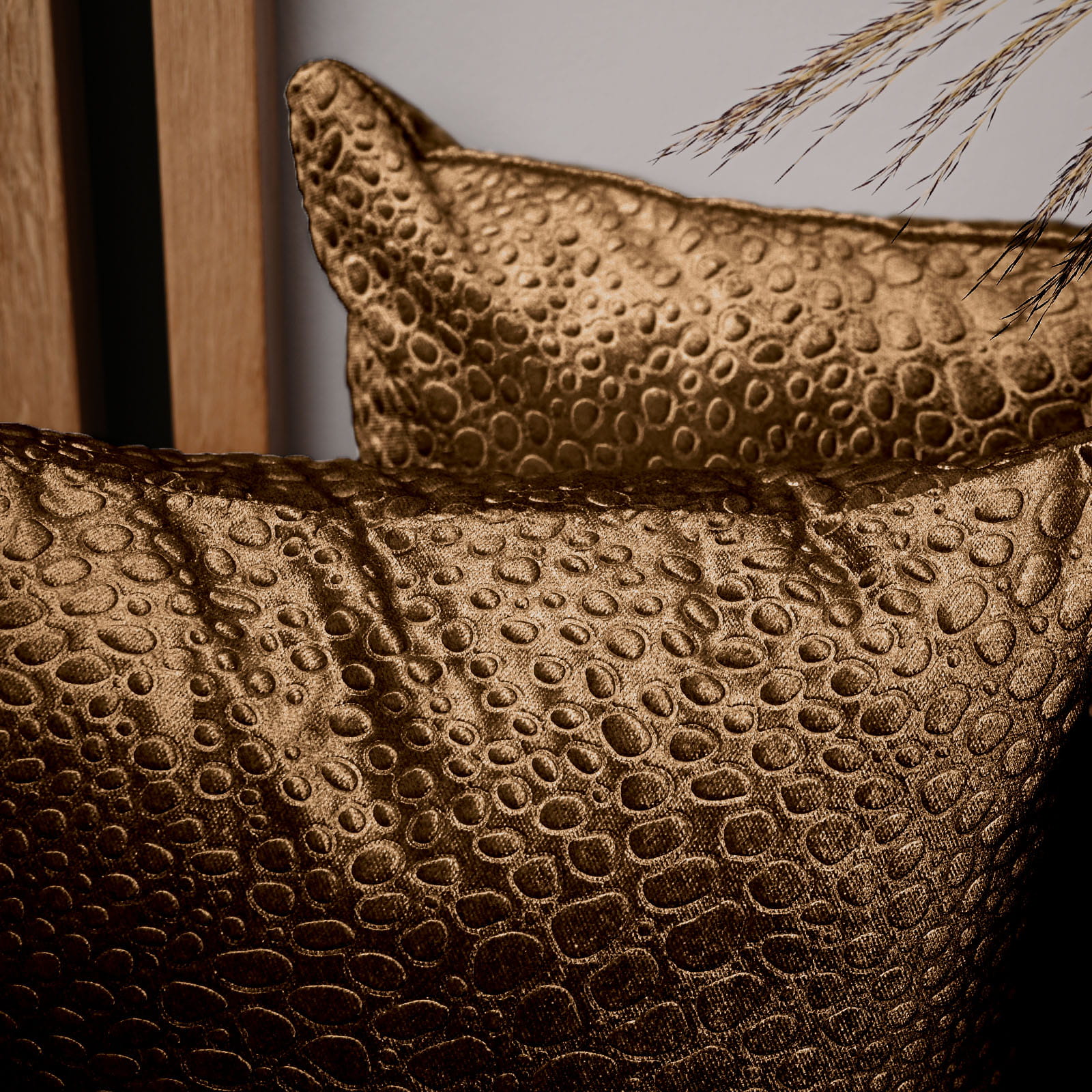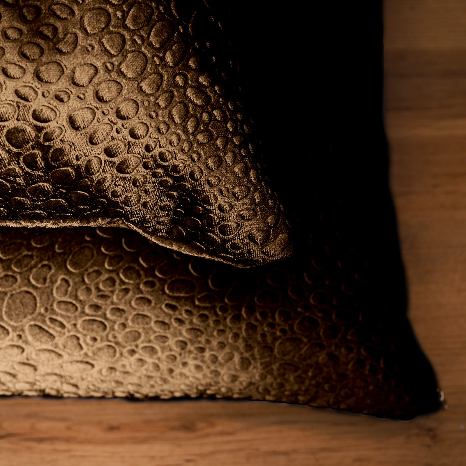 Dekorační povlak na polštář 30x30 cm z velurové tkaniny karamelové barvy se strukturou „kapek“