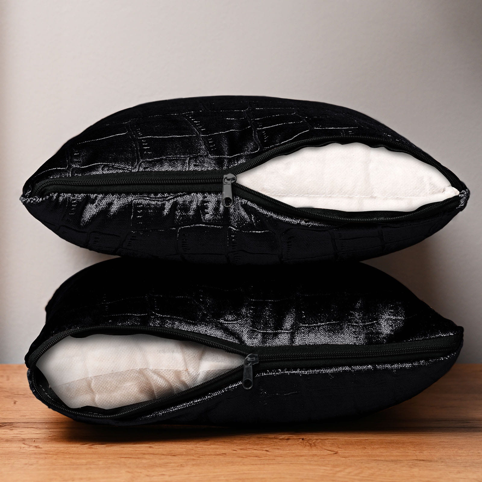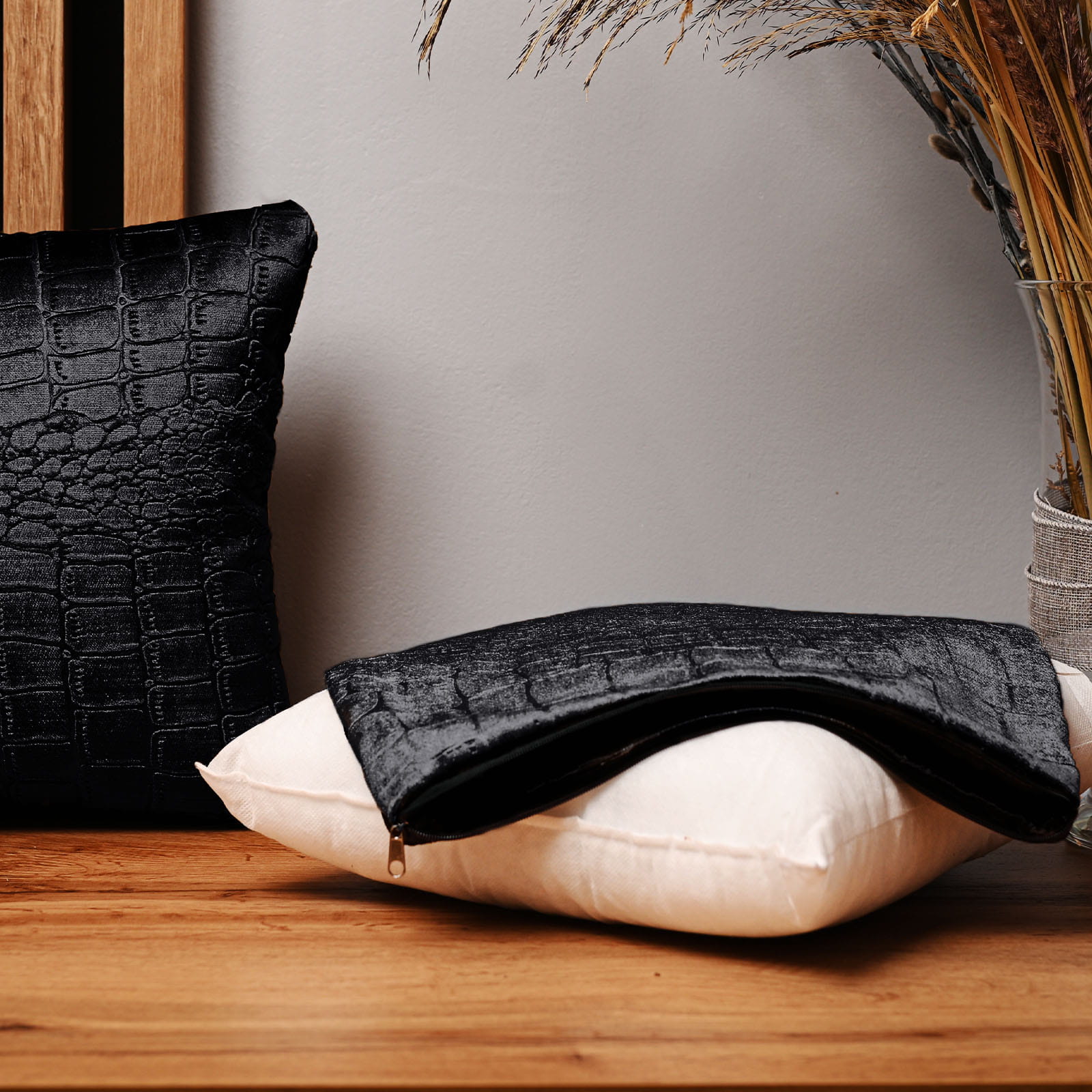 Dekorační povlak na polštář 35x35 cm z černé velurové tkaniny s reliéfním vzorem „krokodýlí kůže“