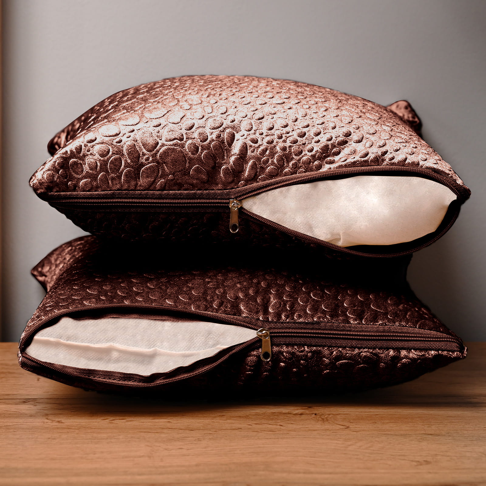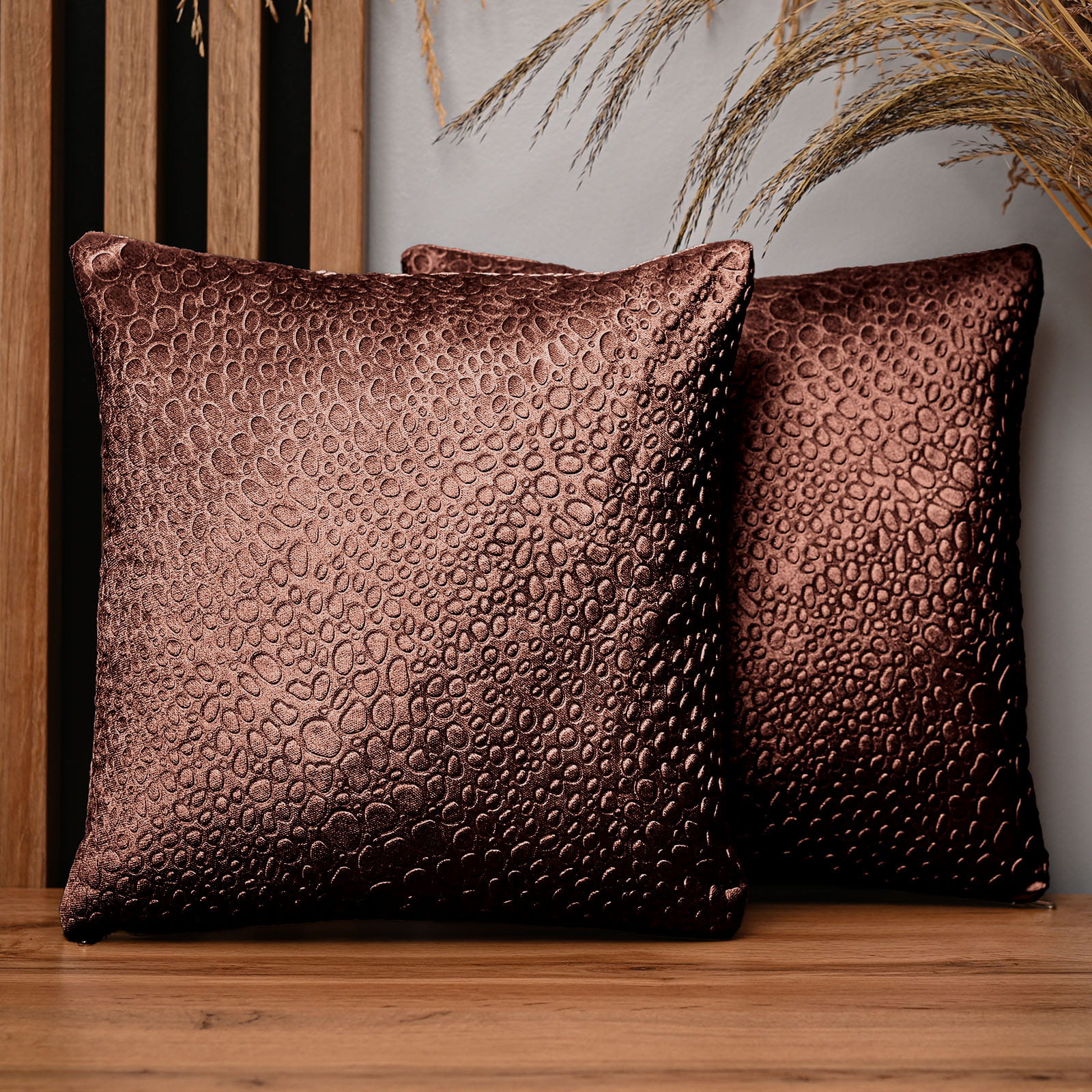 Dekorační povlak na polštář 35x35 cm z červenohnědé velurové tkaniny s texturou „kapek“
