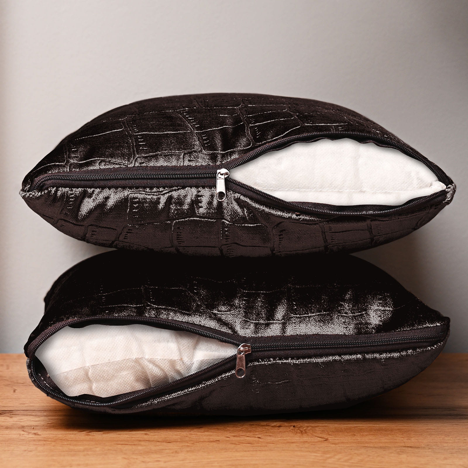 Dekorační povlak na polštář 35x35 cm z hnědé velurové tkaniny s reliéfním vzorem „krokodýlí kůže“