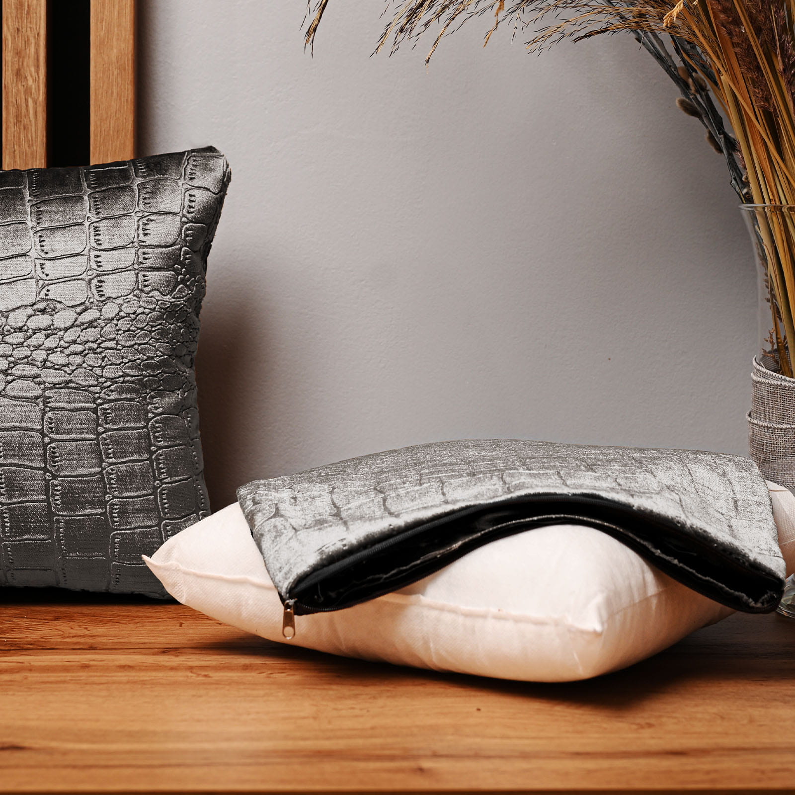 Dekorační povlak na polštář 35x35 cm z šedé velurové látky s reliéfním vzorem „krokodýlí kůže“