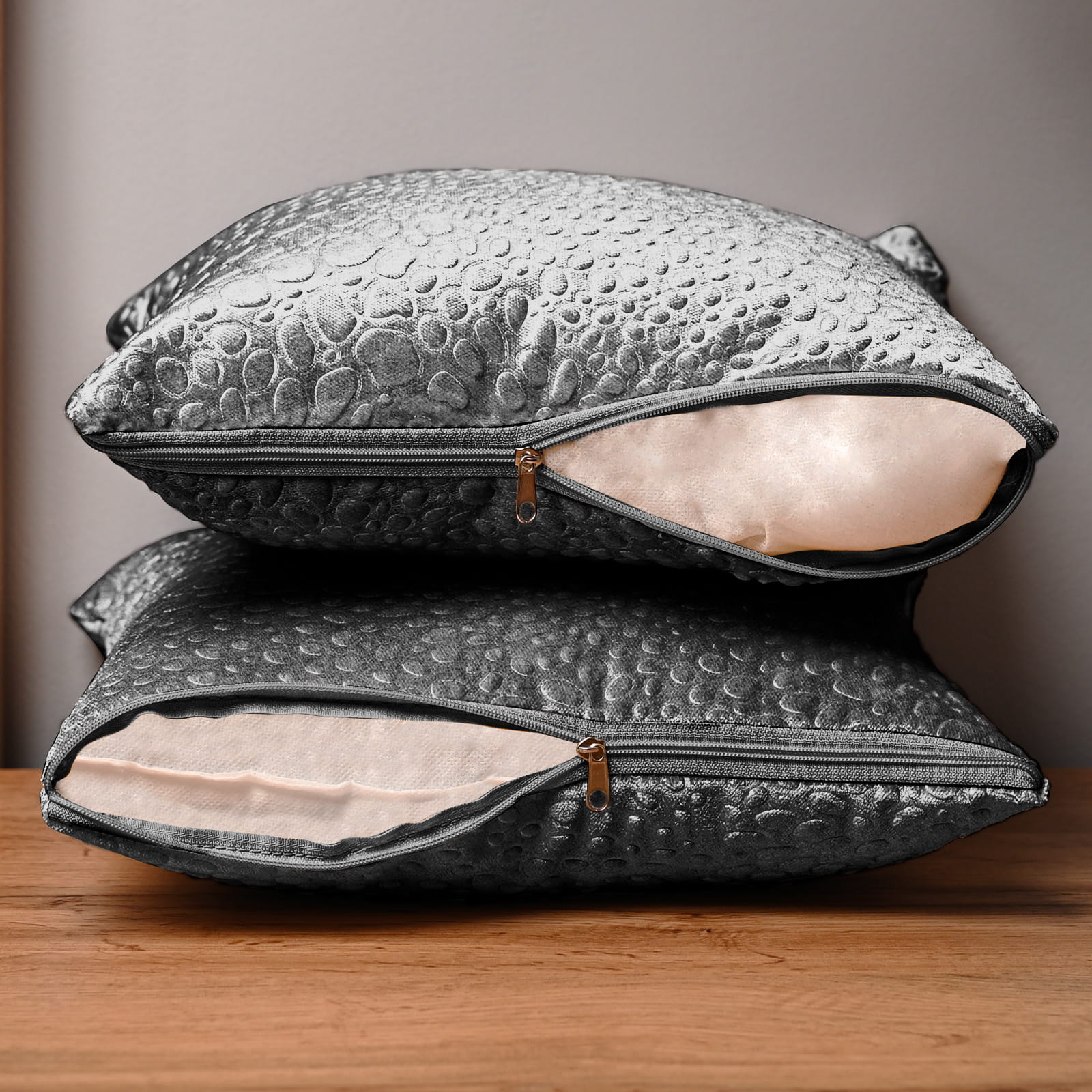 Dekorační povlak na polštář 35x35 cm z šedé velurové tkaniny s texturou „kapek“