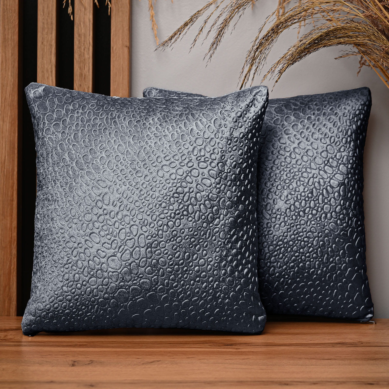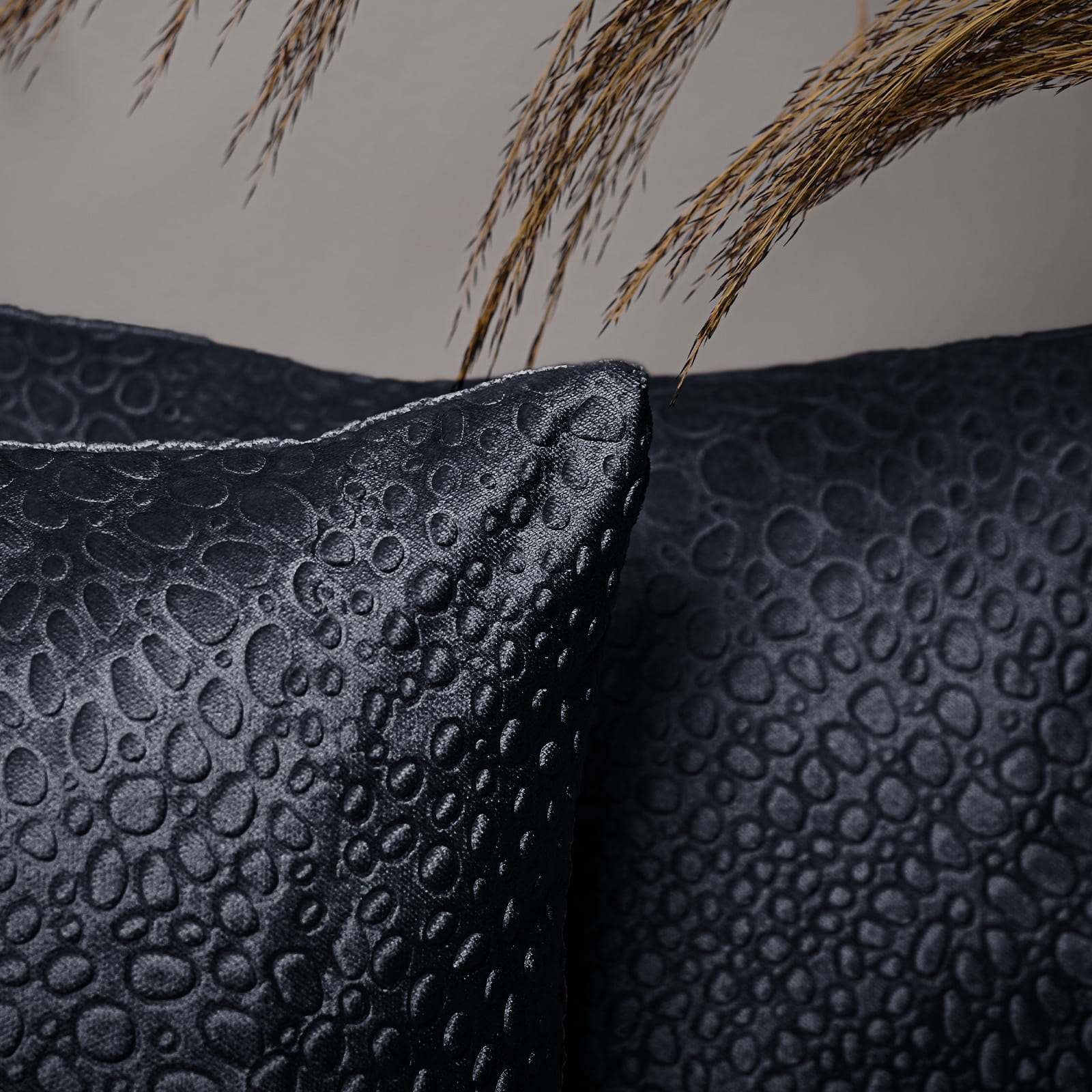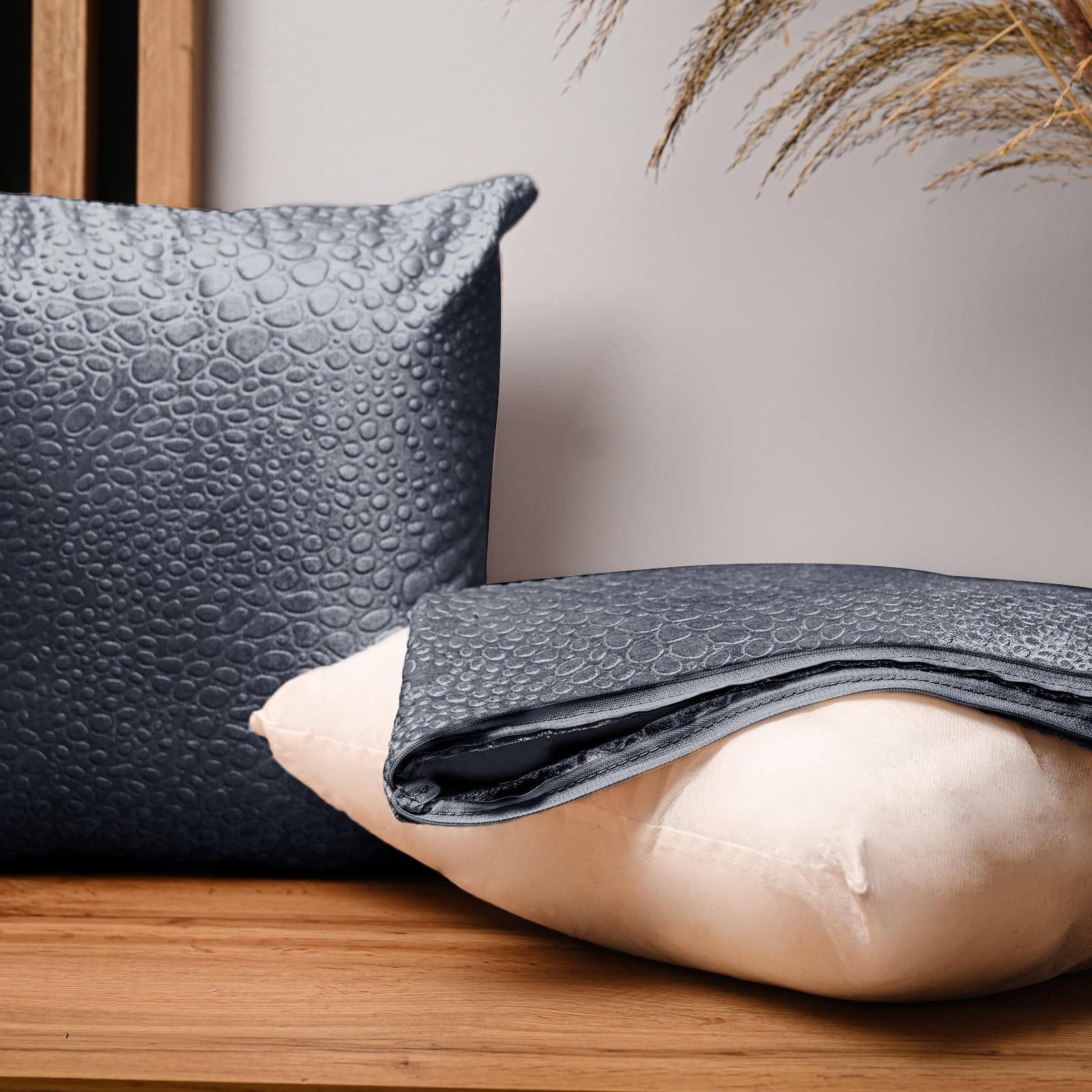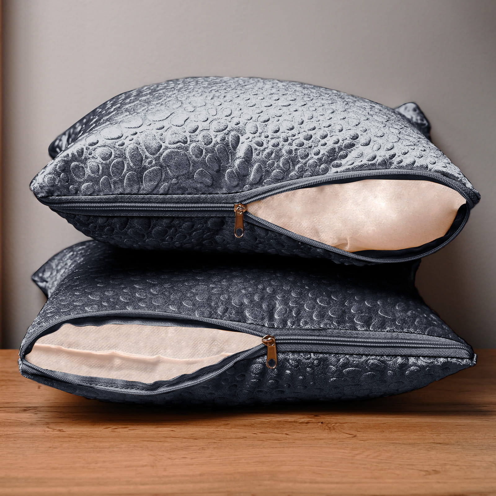 Dekorační povlak na polštář 35x35 cm z šedomodrého velurového plátna se strukturou „kapek“
