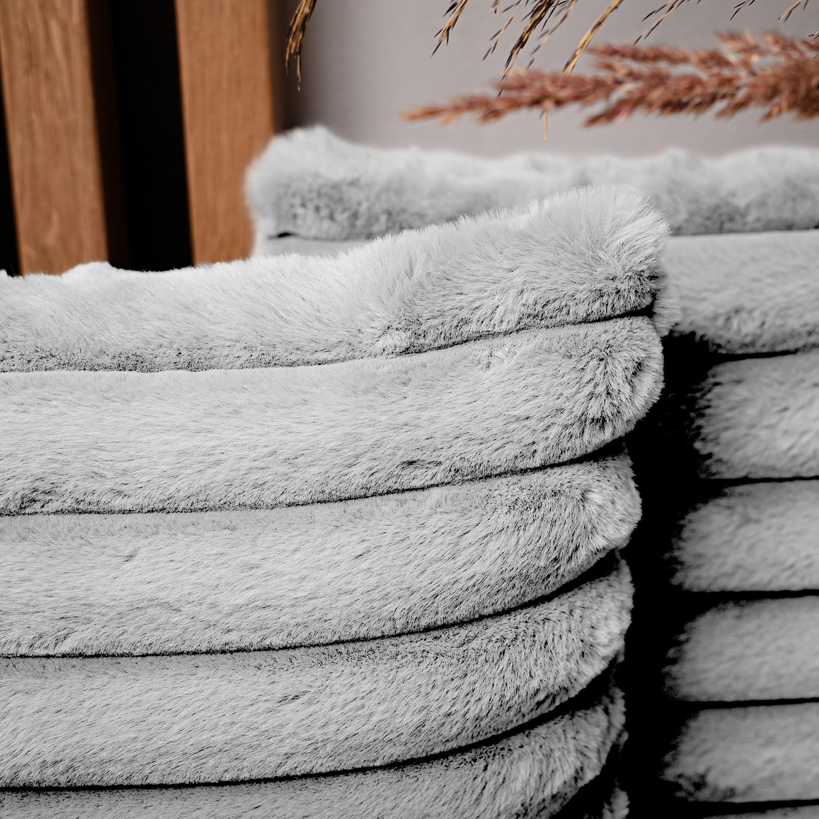 Dekorační povlak na polštář 45x45 cm v barvě světle šedá z imitace kožíšku s prošíváním