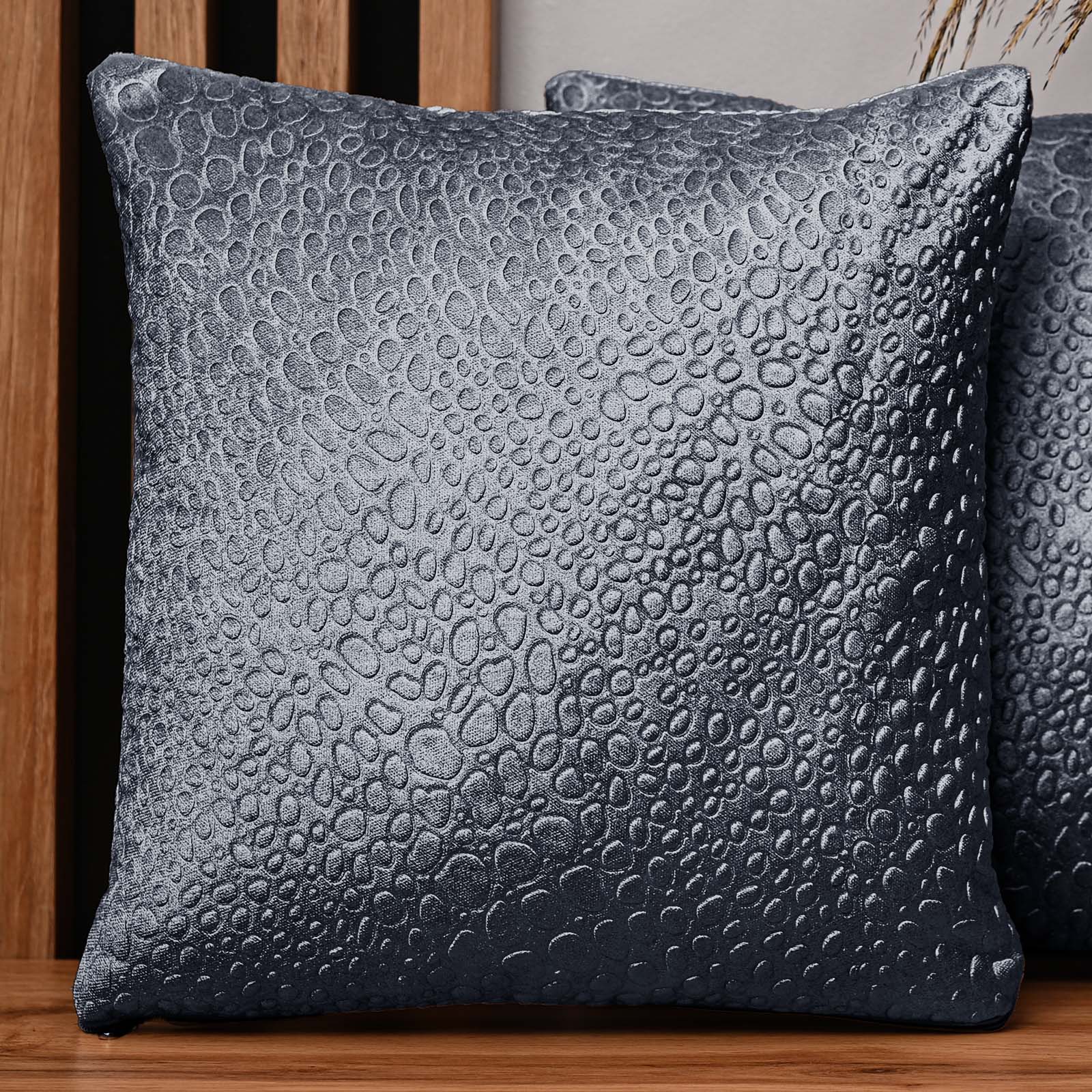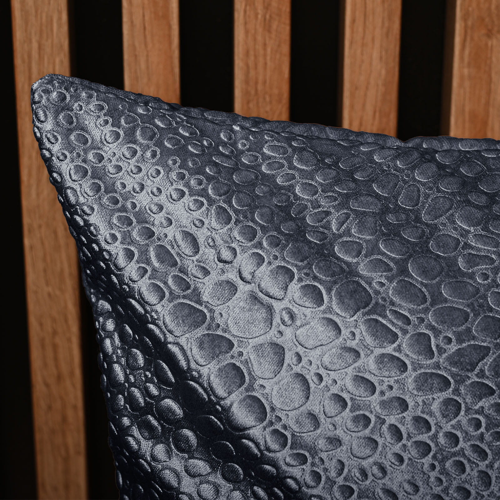Dekorační povlak na polštář 60x60 cm z šedomodré velurové tkaniny s texturou "kapek"