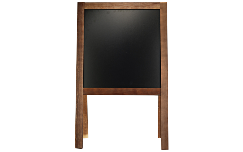 Reklamní stolička v hnědém dřevěném rámu o rozměrech 60x100 cm.