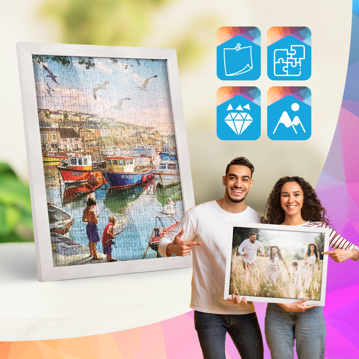 Rám lze vystavit jak na nábytku, tak na zdi. Integrovaná podpora a namontovaný závěs umožňují postavit nebo zavěsit rám svisle nebo vodorovně, takže jej lze snadno přizpůsobit interiéru.