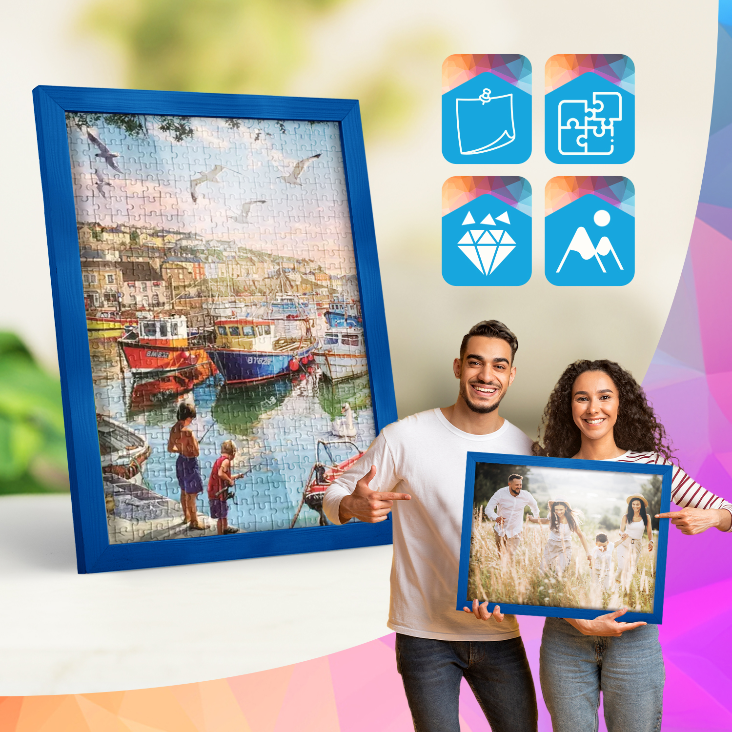 Fotorámeček 25 x 35 cm modrý, z přírodního dřeva