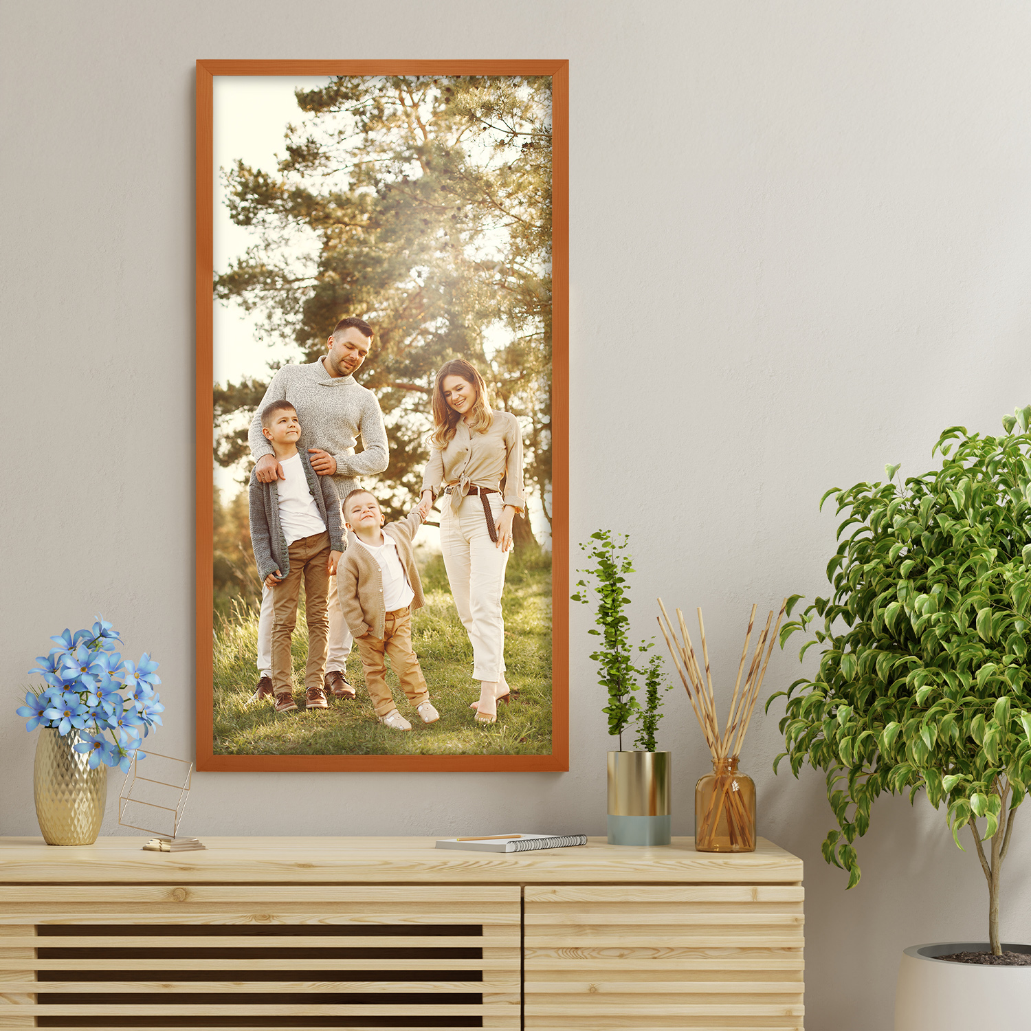 Rám lze vystavit jak na nábytku, tak na zdi. Integrovaná podpora a namontovaný závěs umožňují postavit nebo zavěsit rám svisle nebo vodorovně, takže jej lze snadno přizpůsobit interiéru.