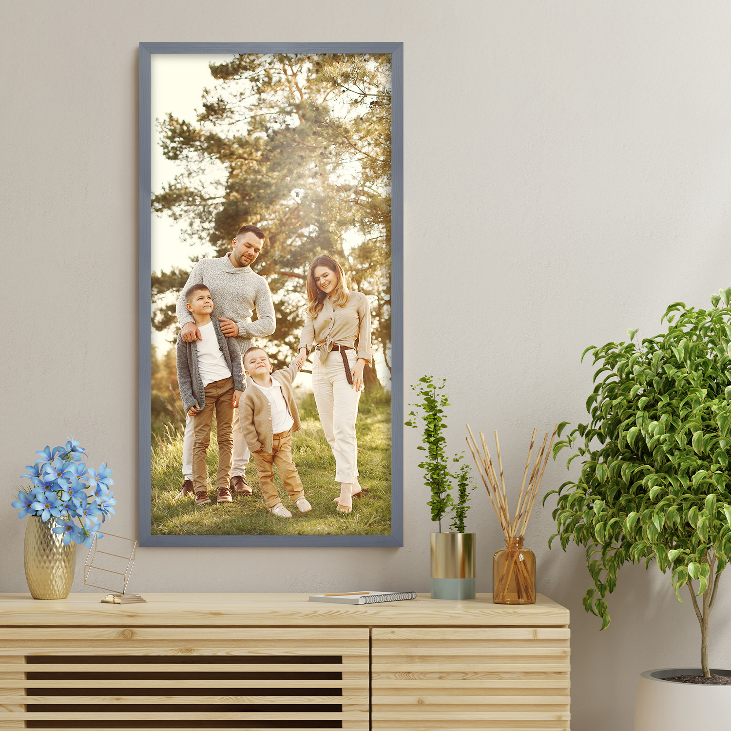 Fotorámeček 40 x 80 cm šedý, z přírodního dřeva