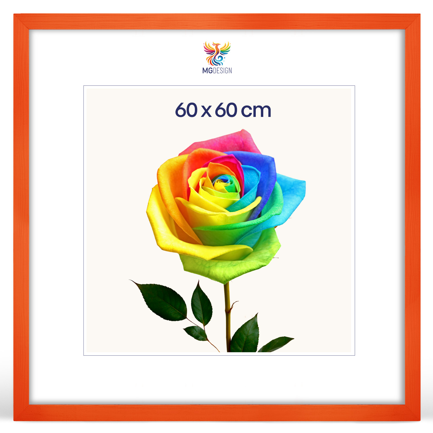 Rámeček na fotografie 60 x 60 cm, oranžový, z přírodního dřeva