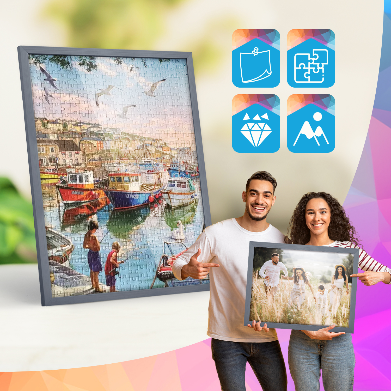 Fotorámeček 70 x 90 cm šedý, z přírodního dřeva