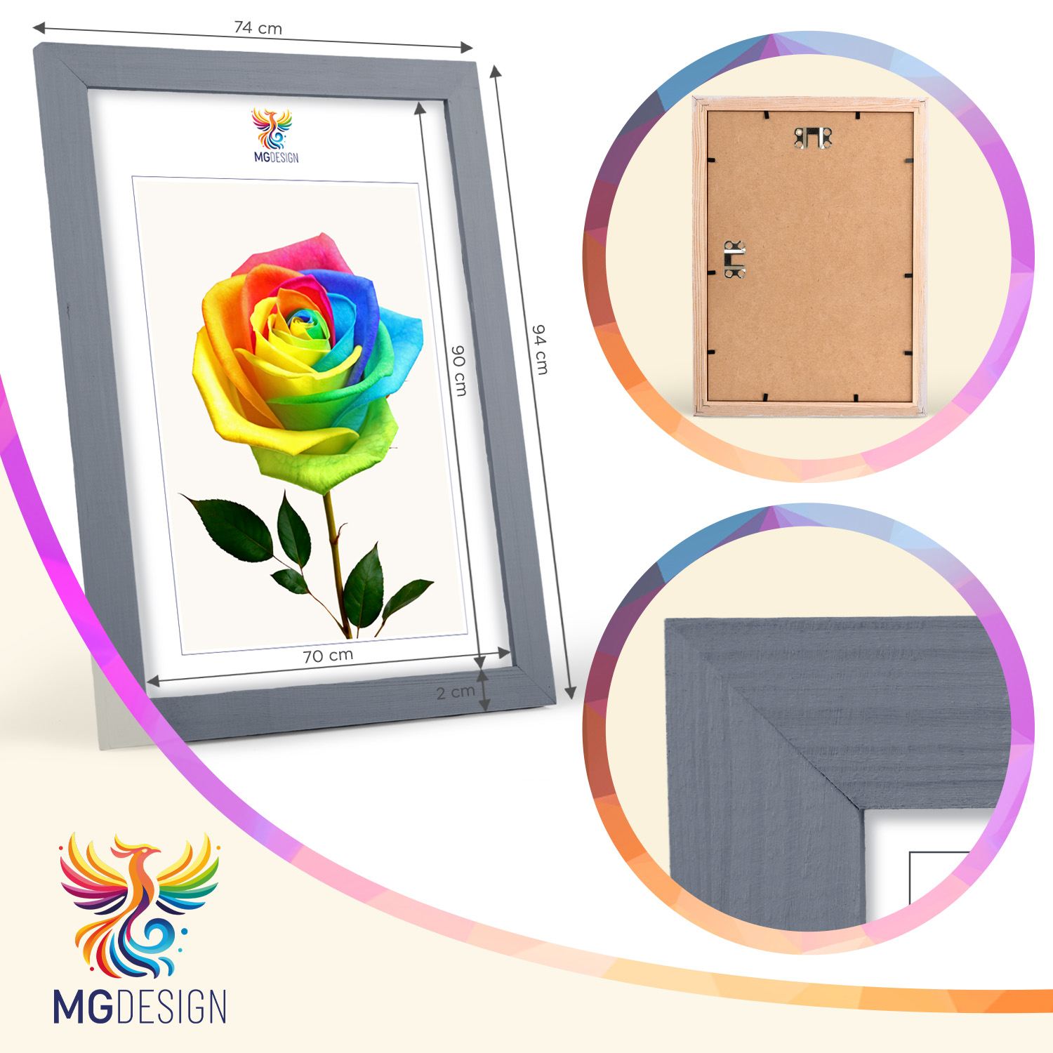 Rámeček na fotografie 70 x 90 cm, šedý, z přírodního dřeva