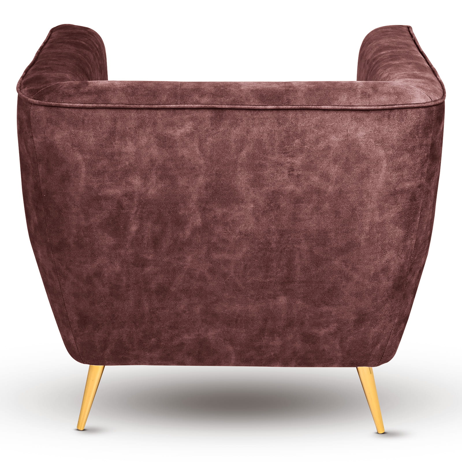 Křeslo Lara v hnědé a červené velurové látce s prošíváním a zlatými nohami