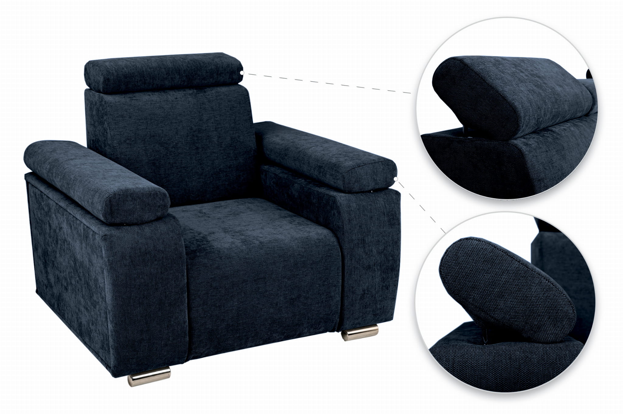 Křeslo MILAN s nastavitelnou opěrkou hlavy a područkami v tmavě modré barvě