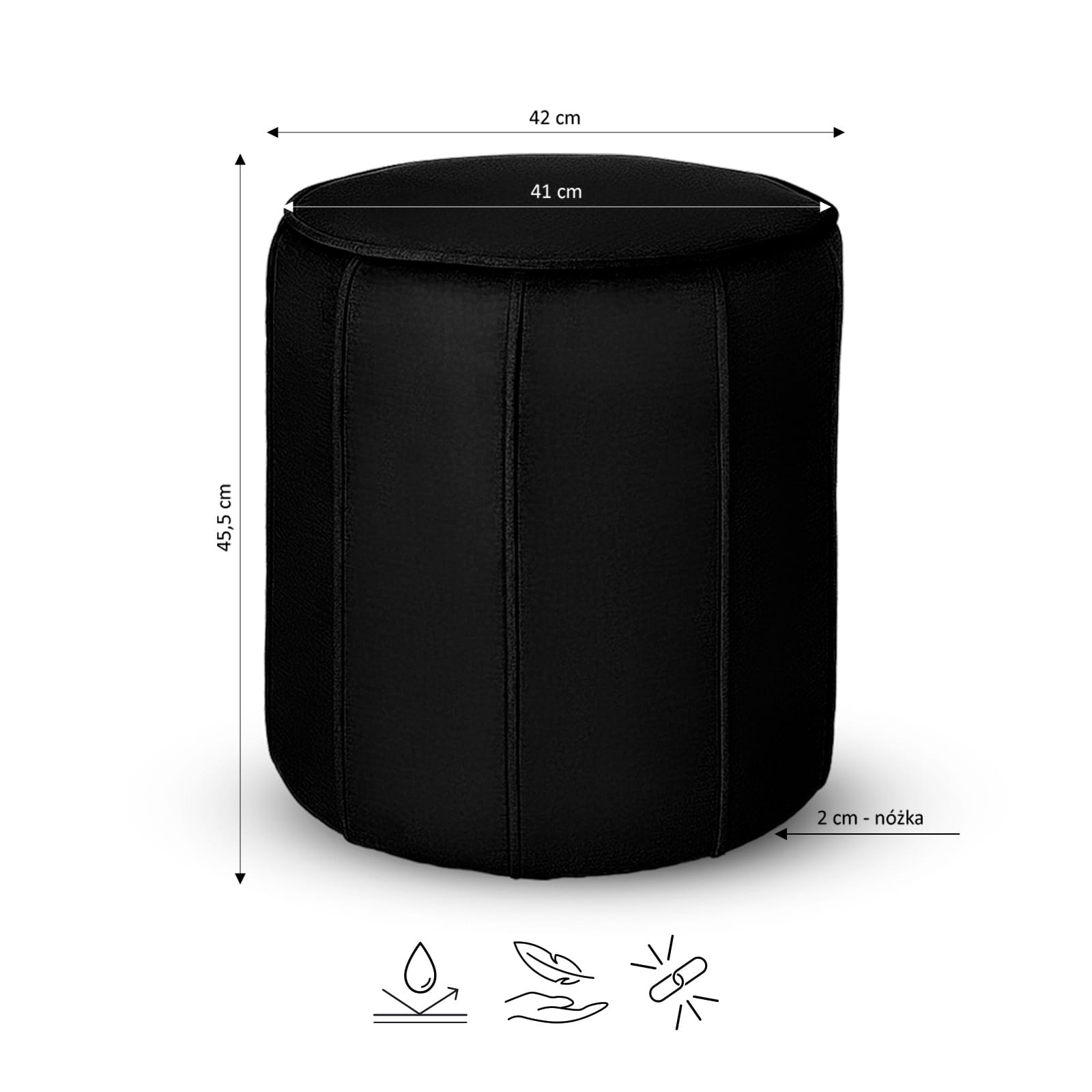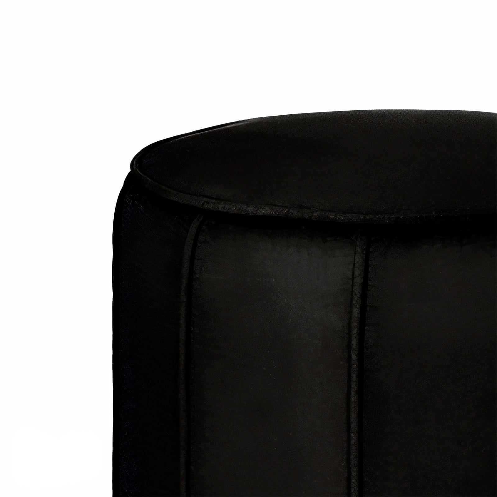 Kulatý prošívaný puf LIVIA v černé barvě – sedák z velurové tkaniny