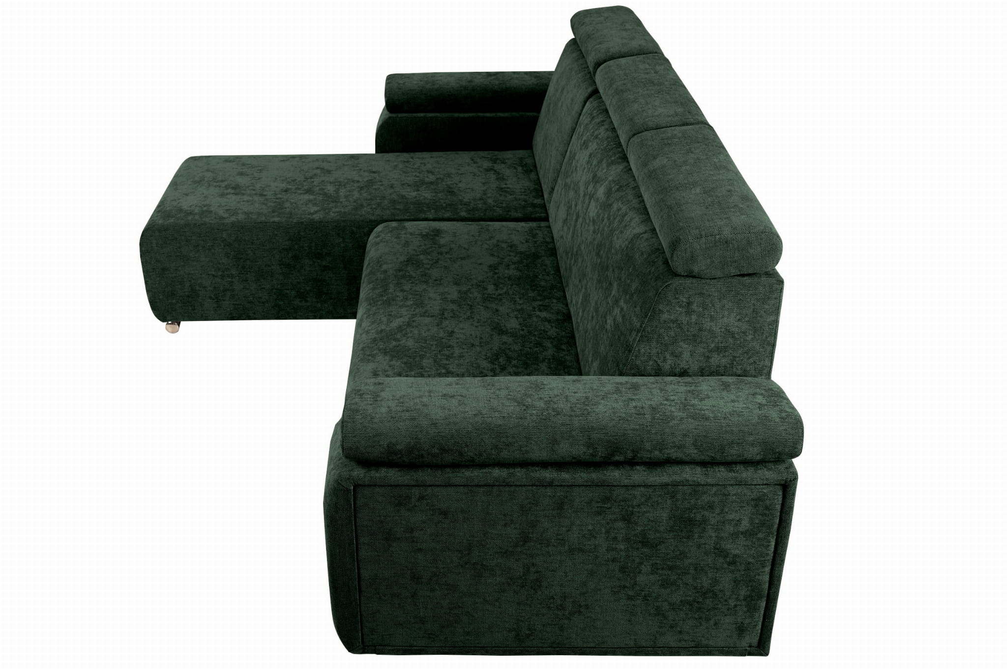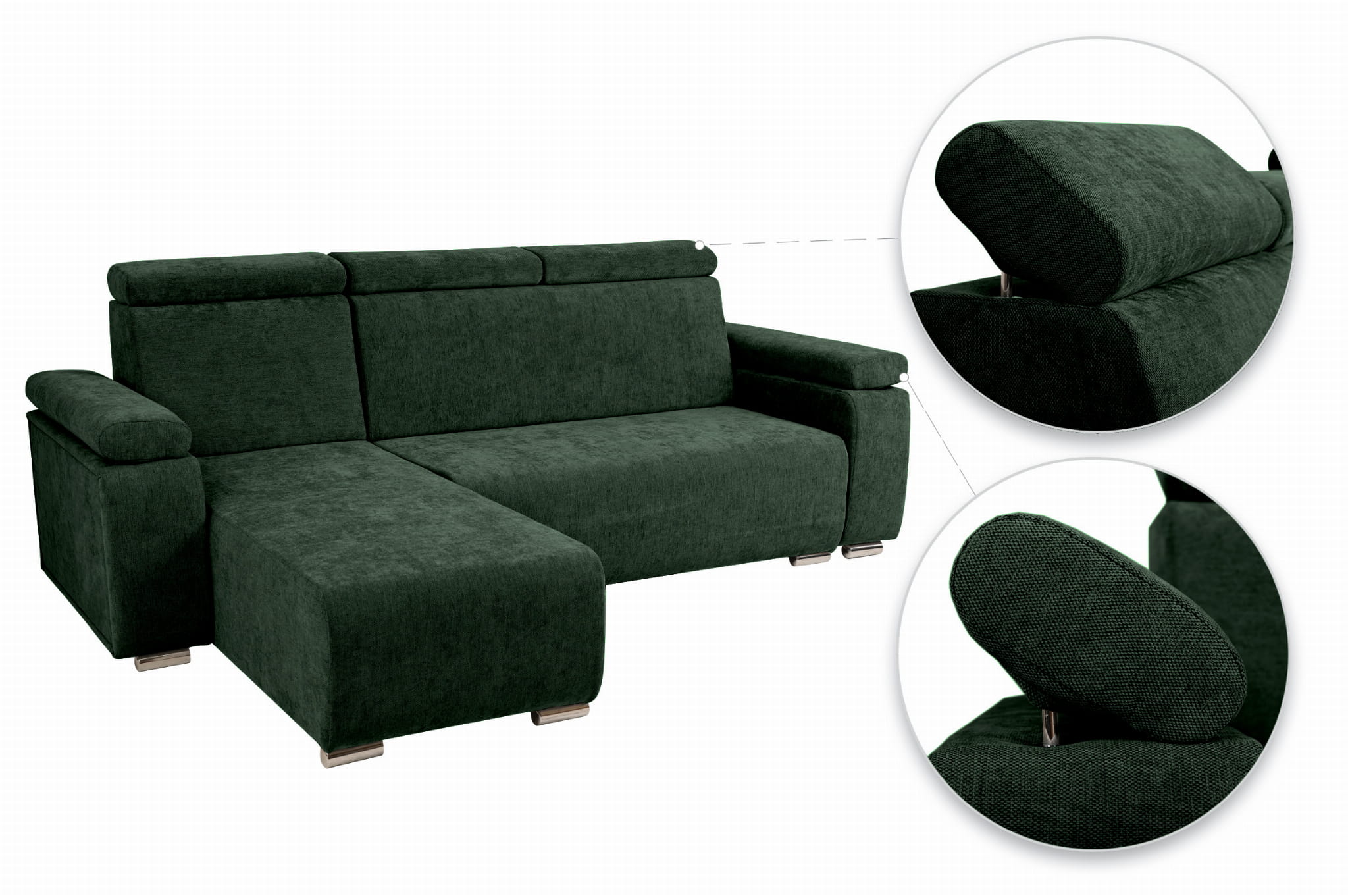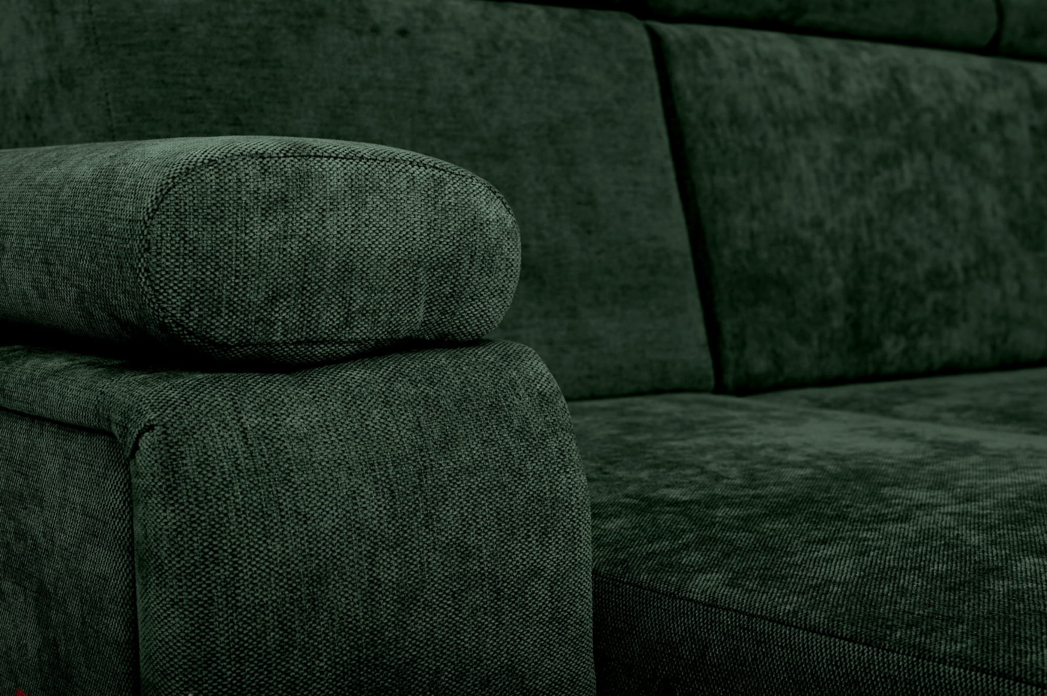 Levá rohová pohovka s nastavitelnými opěrkami hlavy a područkami MILAN v tmavě zelené barvě