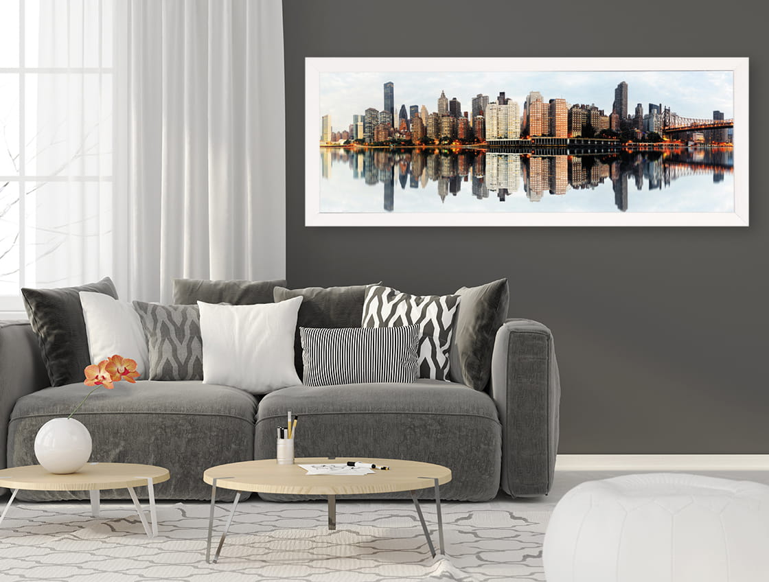 Moderní obrázek v bílém rámu 50x140 cm - Město 1