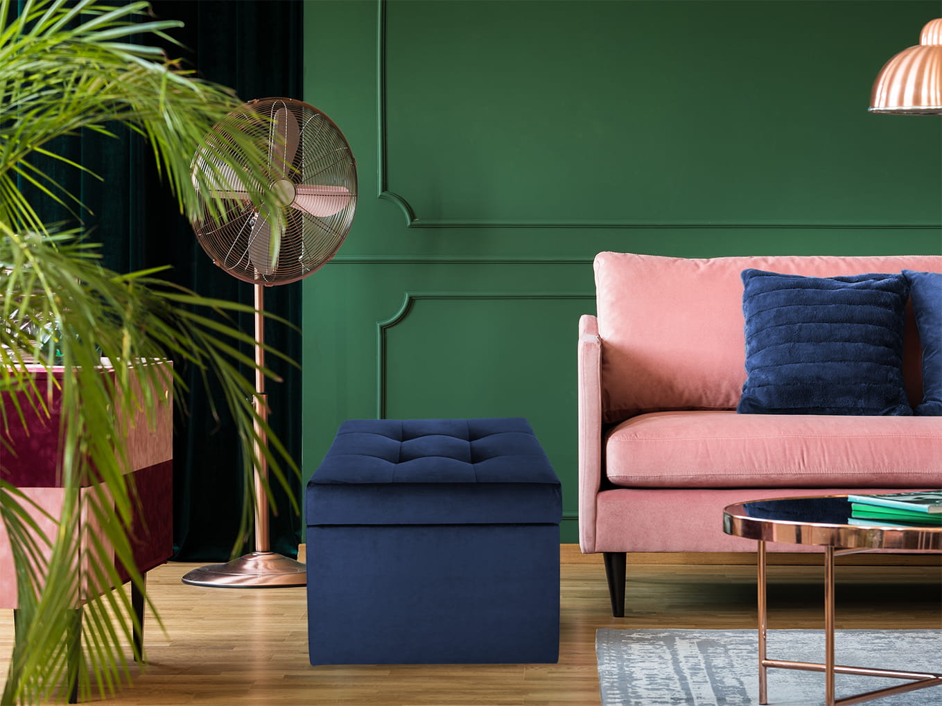 Moderní otevírací puf 45x45 cm v tmavě modré barvě