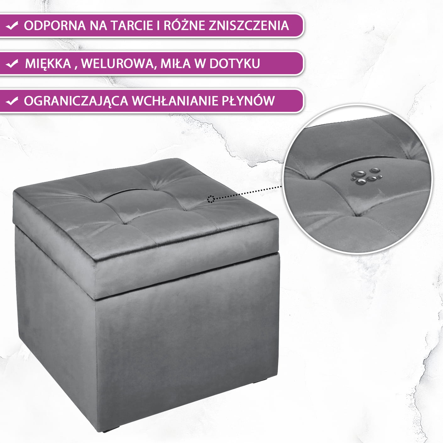 Moderní puf s úložným prostorem 45x45 cm - šedý