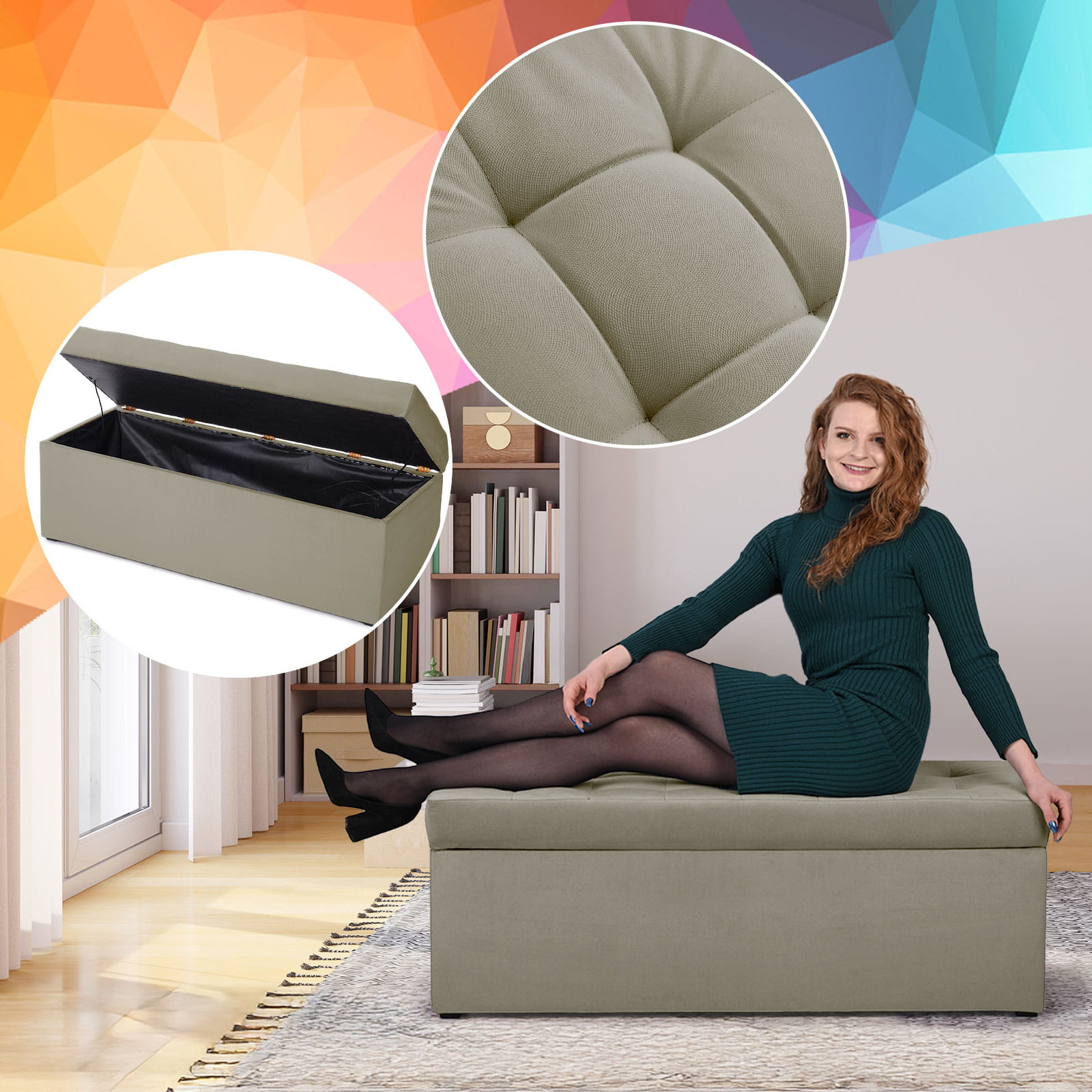 Čalouněný taburet s prostorným úložným prostorem je elegantním a praktickým doplňkem každého interiéru. Je pevně vyroben s důrazem na detaily a zajišťuje pohodlí a odolnost při každodenním používání. Měkké sedadlo s jemným prošíváním dodává styl a funkčnost úložného prostoru umožňuje ukládání drobných předmětů, jako jsou deky, polštáře nebo časopisy. Pufa se skvěle hodí do obývacího pokoje, ložnice i předsíně a je dokonalým spojením estetiky a užitečnosti – ideální pro ty, kteří hledají nábytek kombinující styl a funkčnost.